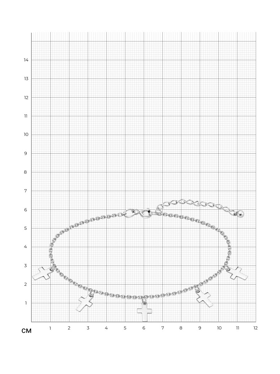 Браслет выполнен из серебра 925 пробы с родиевым покрытием. Характеристики. Высота крестика 10мм, ширина 5,8мм. Есть возможность удлинить браслет на 50мм. Замок шпрингельный. Отличным дополнением к браслету будет колье арт.5-070-2р. Берегите изделие от воздействия влаги, любых спиртосодержащих растворов и жидкостей, а также парфюма. Для ухода и чистки желательно использовать специальные салфетки для серебра. Приятным дополнением к ювелирному украшению является фирменная упаковка. Значение веса и габаритов в характеристиках примерные и могут отличаться от фактических.