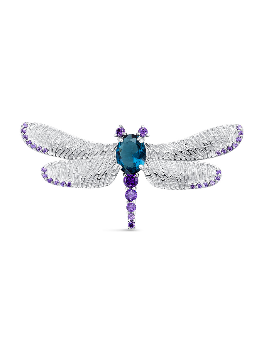 Брошь Стрекоза с плавленым кварцем цвет Лондон топаз из серебра 925 пробы с родиевым покрытием. Характеристики. Вставка 1 плавленый кварц 8х6мм цвет Лондон топаз огранка овал, 26 недрагоценных фианитов 1мм цвет аметист огранка круг, 1 недрагоценный фианит 3мм цвет аметист огранка круг, 1 недрагоценный фианит 2,5мм цвет аметист огранка круг. Высота броши 22мм, ширина 44,5мм, глубина вместе с замком 7,5мм, глубина без учёта замка 4,5мм. Отличным дополнением к броши будет подвеска арт.3-06-267-05р. Берегите изделие от воздействия влаги, любых спиртосодержащих растворов и жидкостей, а также парфюма. Для ухода и чистки желательно использовать специальные салфетки для серебра. Приятным дополнением к ювелирному украшению является фирменная упаковка. Значение веса в характеристиках является примерным и может отличаться от фактического.