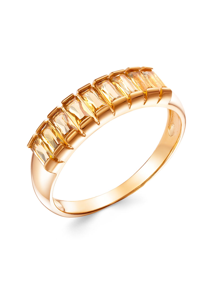 Кольцо выполнено из серебра 925 пробы с золотым покрытием. Характеристики. Вставка 9 натуральных цитринов 4х2 мм цвет жёлтый огранка багет. Ширина кольца 4,5 мм, глубина 2,5 мм. Ширина шинки 2 мм. Отличным дополнением к кольцу будут серьги арт. С-015-34з. Берегите изделие от воздействия влаги, любых спиртосодержащих растворов и жидкостей, а также парфюма. Для ухода и чистки желательно использовать специальные салфетки для серебра. Приятным дополнением к ювелирному украшению является фирменная упаковка. Значение веса в характеристиках является примерным и может отличаться от фактического.