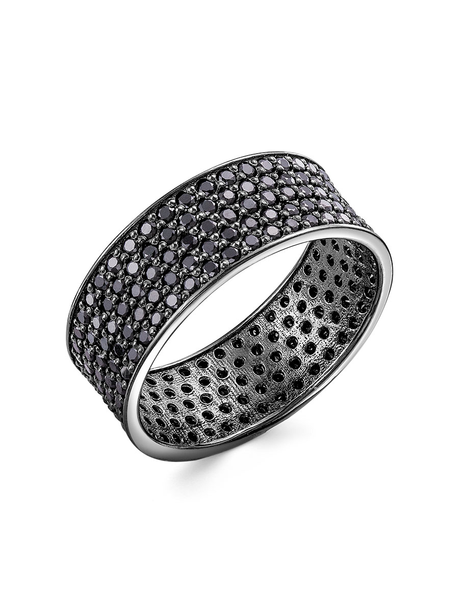 Кольцо выполнено из серебра 925 пробы с родиевым покрытием. Характеристики. Вставка 215 натуральных шпинелей 1,25мм цвет чёрный огранка круг. Ширина шинки 7,5мм, глубина 1,1мм. Берегите изделие от воздействия влаги, любых спиртосодержащих растворов и жидкостей, а также парфюма. Для ухода и чистки желательно использовать специальные салфетки для серебра. Приятным дополнением к ювелирному украшению является фирменная упаковка. Значение веса и габаритов в характеристиках примерные и могут отличаться от фактических.