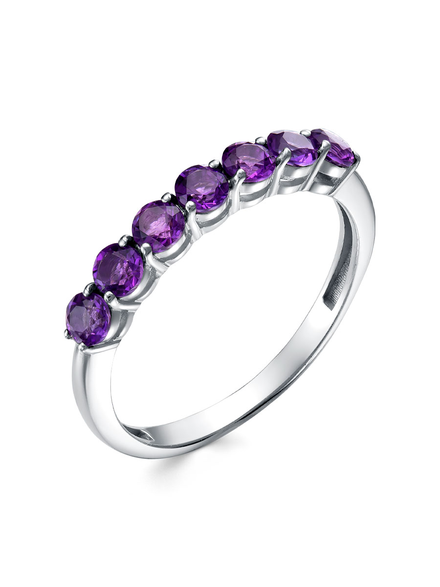 Кольцо выполнено из серебра 925 пробы с родиевым покрытием. Характеристики. Вставка 7 натуральных аметистов 3 мм цвет фиолетовый огранка круг. Высота декоративной части кольца 3 мм, глубина 3,2 мм. Ширина шинки 2 мм. Отличным дополнением к кольцу будут серьги арт.2-04-060-13р. Берегите изделие от воздействия влаги, любых спиртосодержащих растворов и жидкостей, а также парфюма. Для ухода и чистки желательно использовать специальные салфетки для серебра. Приятным дополнением к ювелирному украшению является фирменная упаковка. Значение веса и габаритов в характеристиках примерные и могут отличаться от фактических.