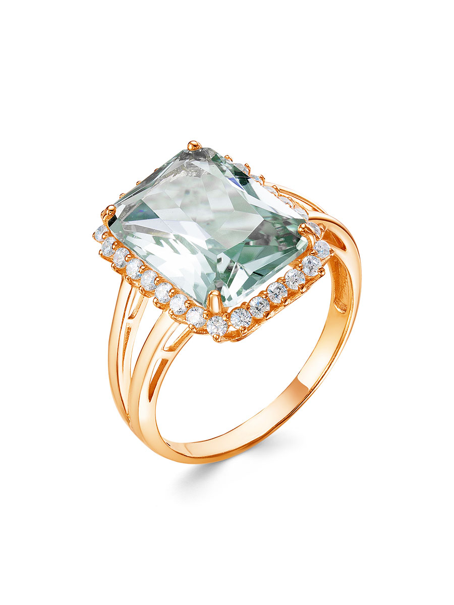 Кольцо выполнено из серебра 925 пробы с золотым покрытием. Характеристики. Вставка 1 натуральный празиолит 14х10мм огранка октагон, 28 бесцветных фианитов 1,5мм огранка круг. Высота декоративной части 17мм, ширина 12мм, глубина декоративной части с камнем 6,5мм. Ширина шинки 2мм. Отличным дополнением к кольцу будут серьги арт.2-04-256-21з. Берегите изделие от воздействия влаги, любых спиртосодержащих растворов и жидкостей, а также парфюма. Для ухода и чистки желательно использовать специальные салфетки для серебра. Приятным дополнением к ювелирному украшению является фирменная упаковка. Значения веса и габаритов в характеристиках являются примерными и могут отличаться от фактических.