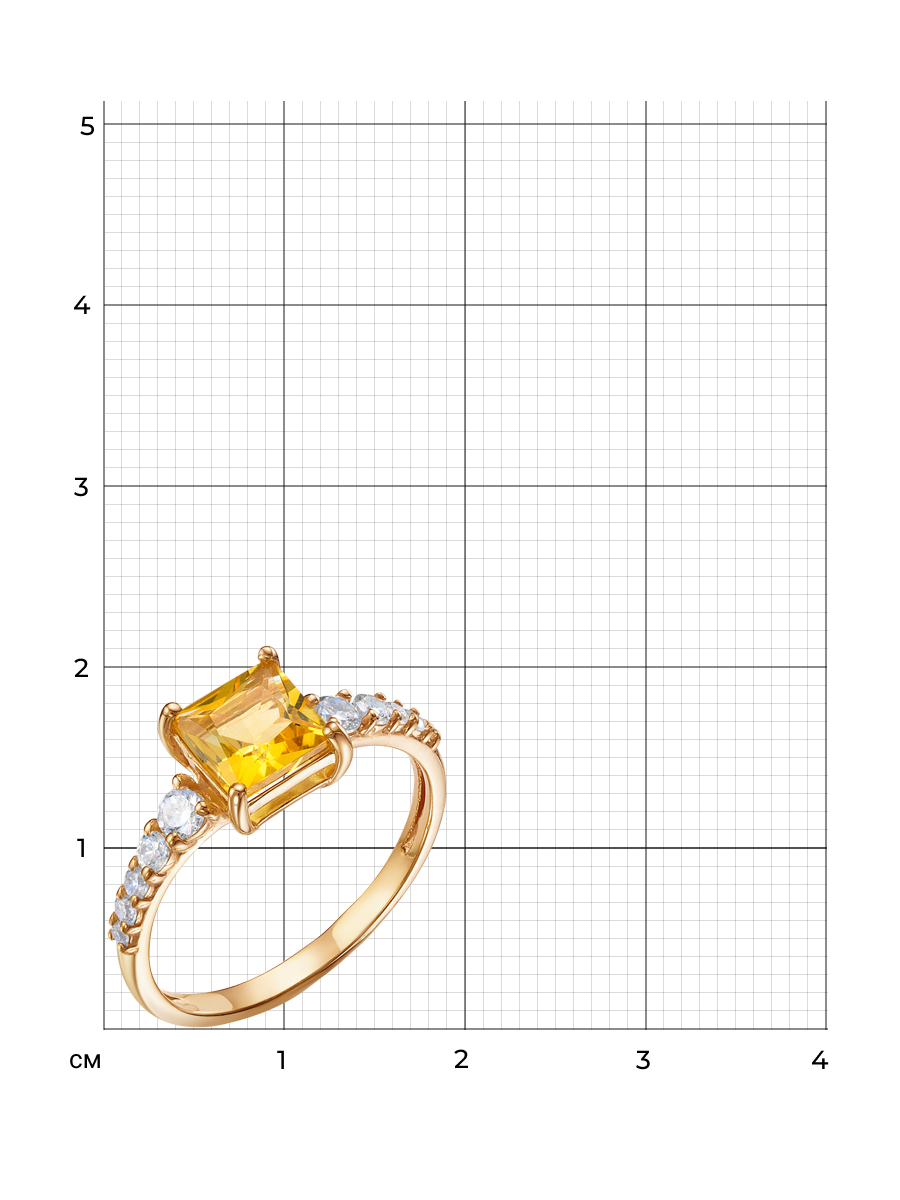 Кольцо выполнено из серебра 925 пробы с золотым покрытием. Характеристики. Вставка 1 натуральный цитрин 6х6мм цвет жёлтый огранка квадрат, 2 недрагоценных бесцветных фианита 1,25мм огранка круг, 4 недрагоценных бесцветных фианита 1,5мм огранка круг, 2 недрагоценных бесцветных фианита 2мм огранка круг, 2 недрагоценных бесцветных фианита 2,5мм огранка круг. Высота декоративной части кольца 7мм, глубина вместе с камнем 4,5мм. Ширина шинки 1,8мм. Отличным дополнением к кольцу будут серьги арт.2-04-290-34з и подвеска арт.3-04-290-34з. Берегите изделие от воздействия влаги, любых спиртосодержащих растворов и жидкостей, а также парфюма. Для ухода и чистки желательно использовать специальные салфетки для серебра. Приятным дополнением к ювелирному украшению является фирменная упаковка. Значение веса и габаритов в характеристиках примерные и могут отличаться от фактических.