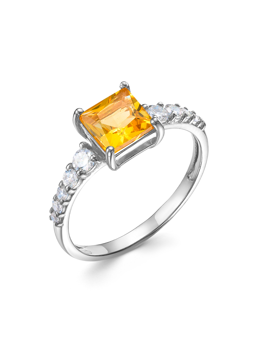 Кольцо выполнено из серебра 925 пробы с родиевым покрытием. Характеристики. Вставка 1 натуральный цитрин 6х6 мм цвет жёлтый огранка квадрат, 2 недрагоценных бесцветных фианита 1,25 мм огранка круг, 4 недрагоценных бесцветных фианита 1,5 мм огранка круг, 2 недрагоценных бесцветных фианита 2 мм огранка круг, 2 недрагоценных бесцветных фианита 2,5 мм огранка круг. Высота декоративной части кольца 7 мм, глубина вместе с камнем 4,5 мм. Ширина шинки 1,8 мм. Отличным дополнением к кольцу будут серьги арт.2-04-290-34р. Берегите изделие от воздействия влаги, любых спиртосодержащих растворов и жидкостей, а также парфюма. Для ухода и чистки желательно использовать специальные салфетки для серебра. Приятным дополнением к ювелирному украшению является фирменная упаковка. Значение веса и габаритов в характеристиках примерные и могут отличаться от фактических.