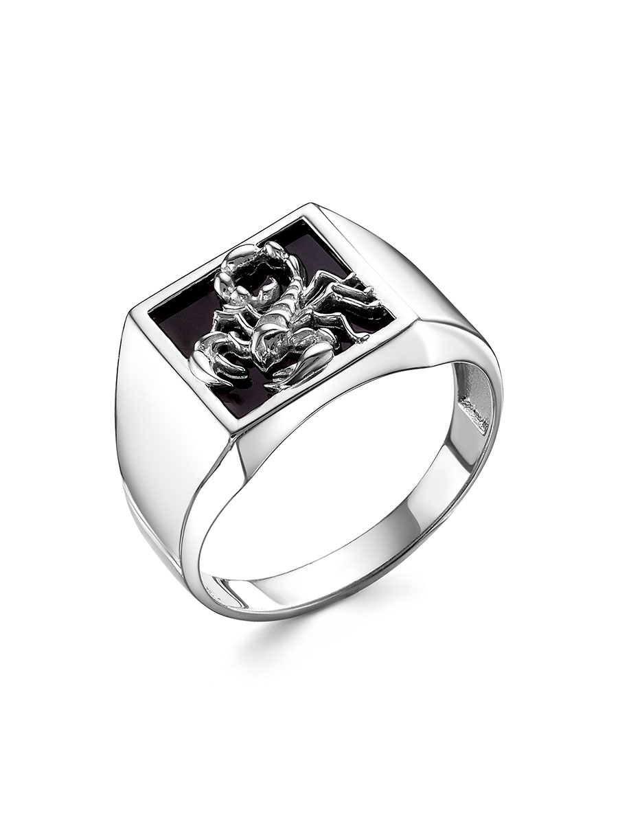 Мужское кольцо Скорпион выполнено из серебра 925 пробы с родиевым покрытием. Характеристики. Вставка 1 натуральный оникс 11х11мм цвет чёрный огранка квадрат. Высота декоративной части кольца 12мм, глубина 3мм. Ширина шинки 3мм. Берегите изделие от воздействия влаги, любых спиртосодержащих растворов и жидкостей, а также парфюма. Для ухода и чистки желательно использовать специальные салфетки для серебра. Приятным дополнением к ювелирному украшению является фирменная упаковка. Значение веса и габаритов в характеристиках примерные и могут отличаться от фактических.