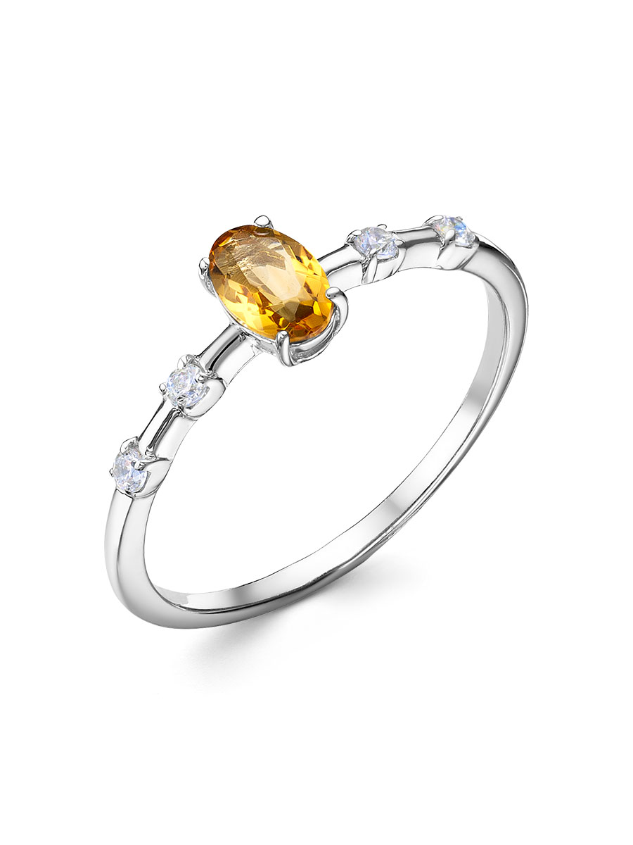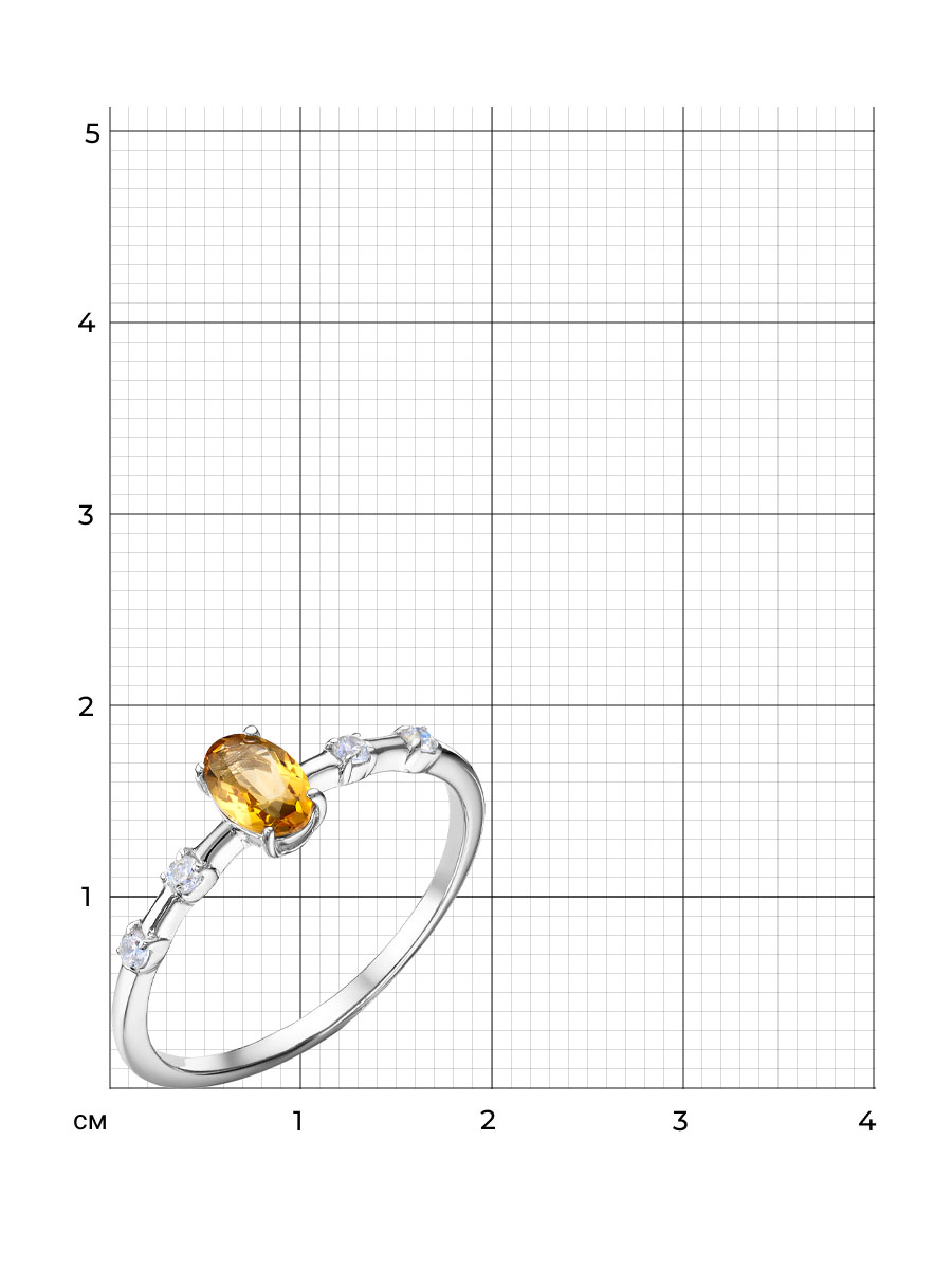 Кольцо выполнено из серебра 925 пробы с родиевым покрытием. Характеристики. Вставка 1 натуральный цитрин 6х4мм цвет жёлтый огранка овал, 4 недрагоценных бесцветных фианита 1,75мм огранка круг. Высота декоративной части кольца 6мм, глубина вместе с камнем 3,5мм. Ширина шинки 1,3мм. Отличным дополнением к кольцу будут серьги арт.2-04-320-34р. Берегите изделие от воздействия влаги, любых спиртосодержащих растворов и жидкостей, а также парфюма. Для ухода и чистки желательно использовать специальные салфетки для серебра. Приятным дополнением к ювелирному украшению является фирменная упаковка. Значение веса и габаритов в характеристиках примерные и могут отличаться от фактических.