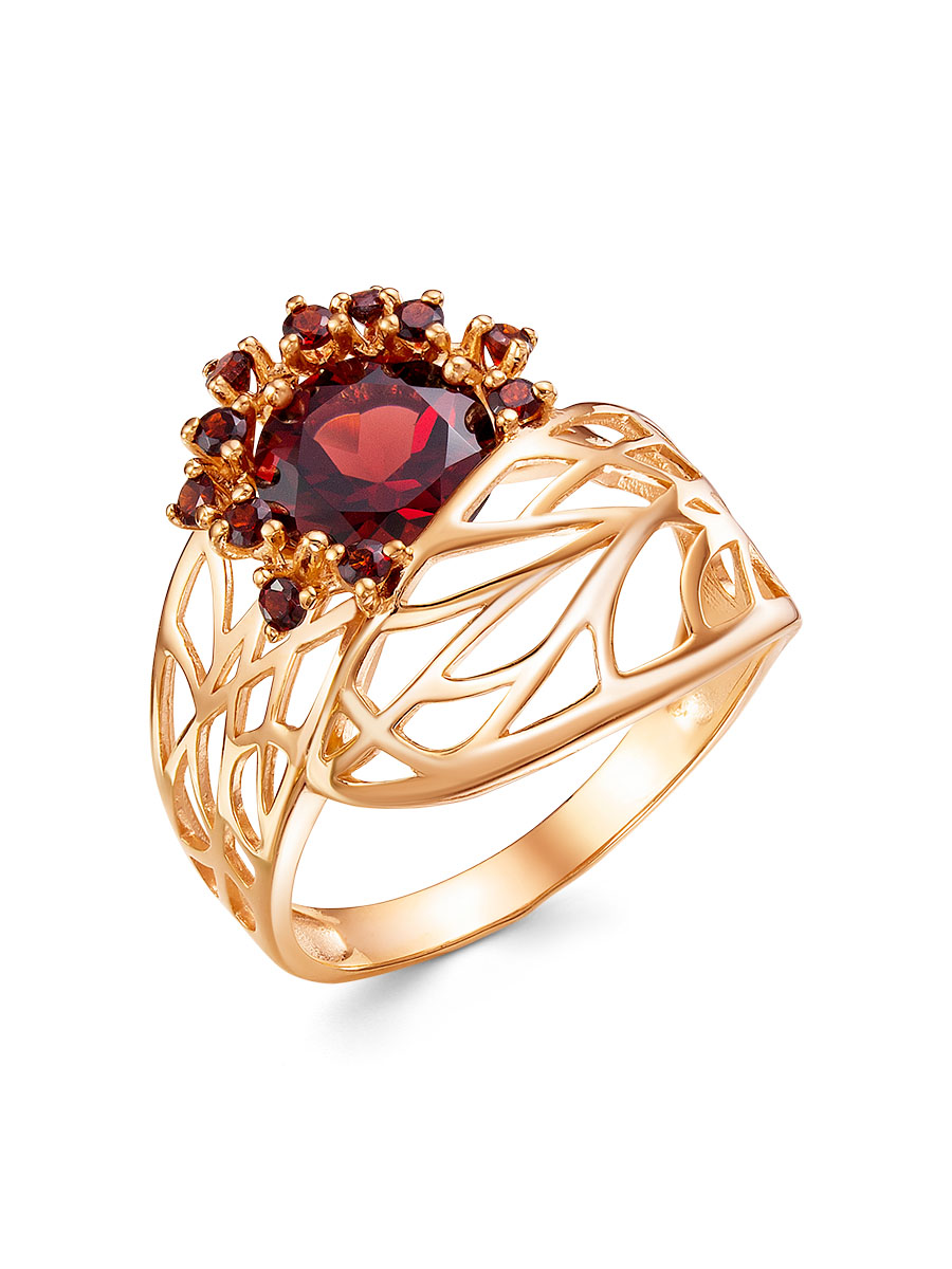 Кольцо выполнено из серебра 925 пробы с золотым покрытием. Характеристики. Вставка 1 натуральный гранат 8 мм цвет красный огранка круг, 11 натуральных гранатов 1,75 мм цвет красный огранка круг. Высота декоративной части кольца 19 мм, диаметр цветка 13 мм, ширина шинки 2,5 мм. Отличным дополнением к кольцу будут серьги арт.2-04-327-03з. Берегите изделие от воздействия влаги, любых спиртосодержащих растворов и жидкостей, а также парфюма. Для ухода и чистки желательно использовать специальные салфетки для серебра. Приятным дополнением к ювелирному украшению является фирменная упаковка. Значение веса и габаритов в характеристиках примерные и могут отличаться от фактических.