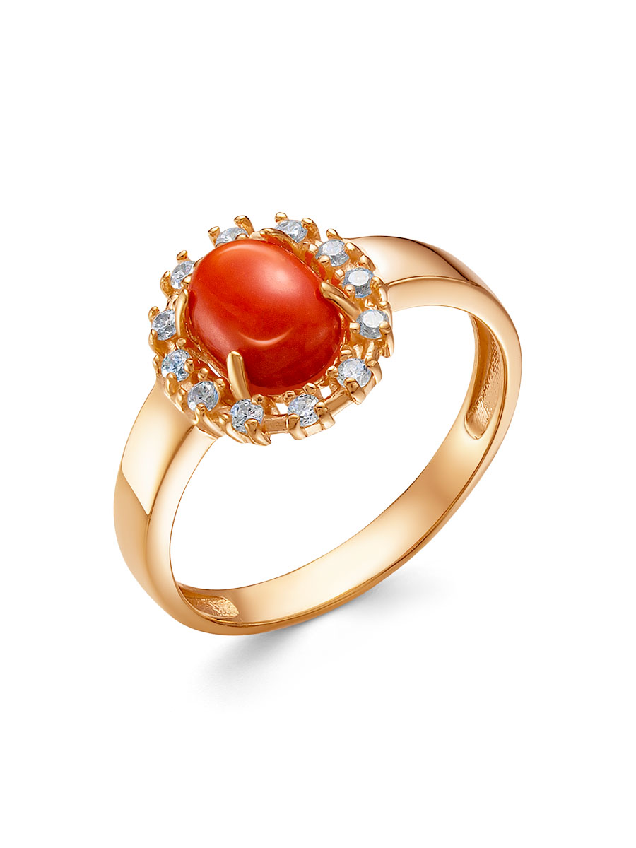 Кольцо выполнено из серебра 925 пробы с золотым покрытием. Характеристики. Вставка 1 натуральный коралл 8х6 мм огранка овал, 12 недрагоценных бесцветных фианитов 1,5 мм огранка круг. Высота декоративной части кольца 12 мм, ширина 1,5 мм, глубина вместе с камнем 4,4 мм. Ширина шинки 2,5 мм. Отличным дополнением к кольцу будут серьги арт. 2-04-333-28з и подвеска арт. 3-04-333-28з. Берегите изделие от воздействия влаги, любых спиртосодержащих растворов и жидкостей, а также парфюма. Для ухода и чистки желательно использовать специальные салфетки для серебра. Приятным дополнением к ювелирному украшению является фирменная упаковка. Значения веса и габаритов в характеристиках примерные и могут отличаться от фактических.