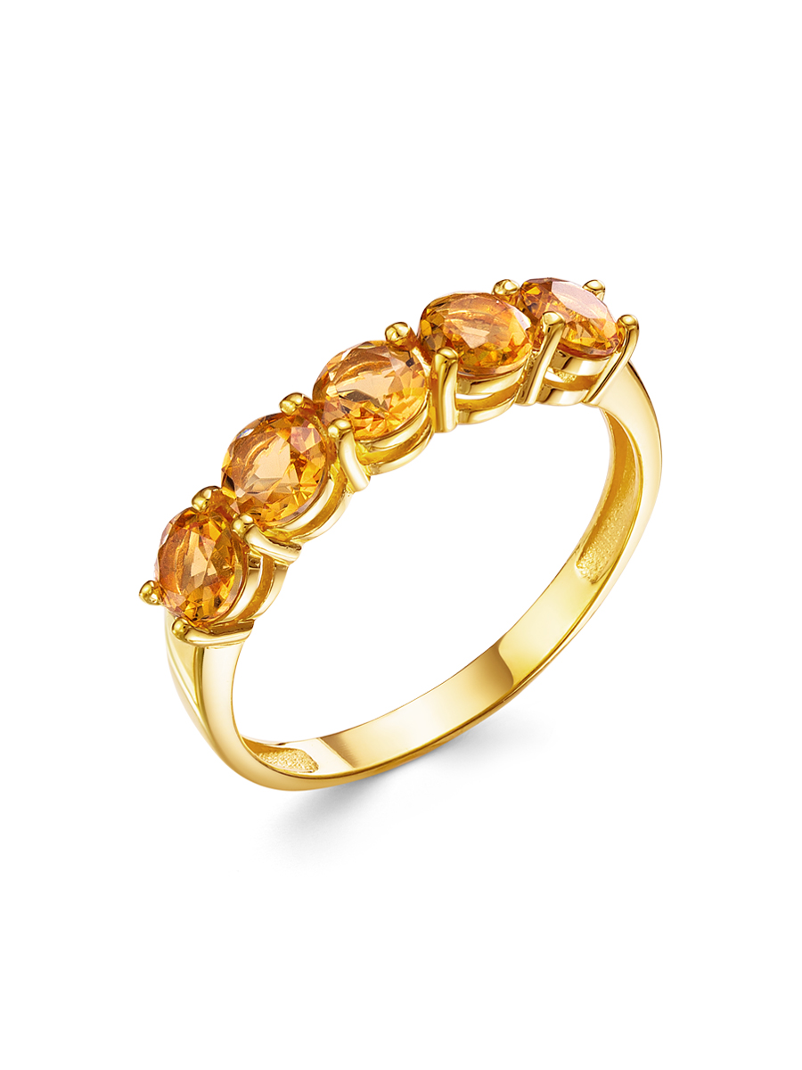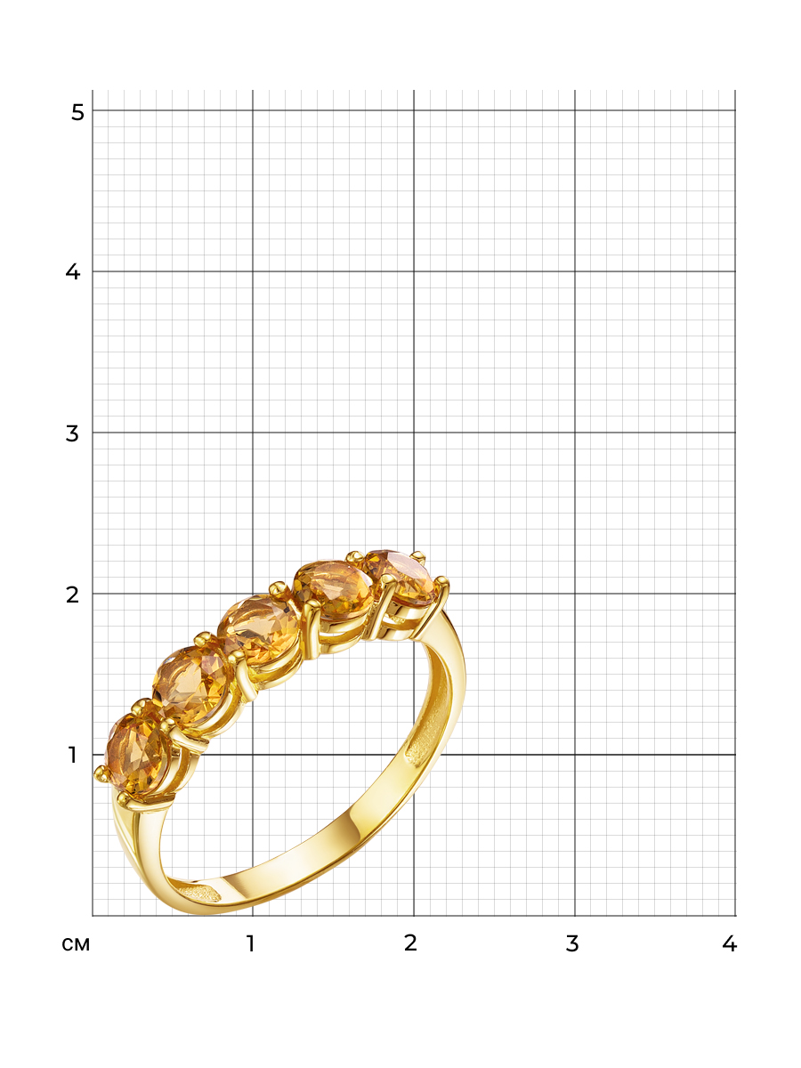 Кольцо выполнено из серебра 925 пробы с золотым покрытием. Характеристики. Вставка 5 натуральных цитринов 4мм цвет жёлтый огранка круг. Высота декоративной части кольца 4мм, глубина 3,5мм. Ширина шинки 2 мм. Отличным дополнением к кольцу будут серьги арт. 2-04-341-34з. Берегите ювелирное изделие от воздействия влаги, любых спиртосодержащих растворов и жидкостей, а также парфюма. Для ухода и чистки желательно использовать специальные салфетки для серебра. Приятным дополнением к ювелирному украшению является фирменная упаковка. Значение веса и габаритов в характеристиках примерные и могут отличаться от фактических.