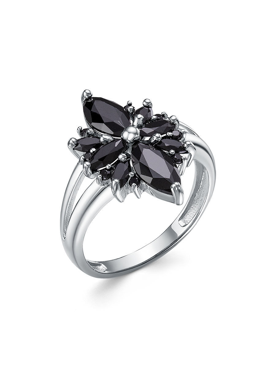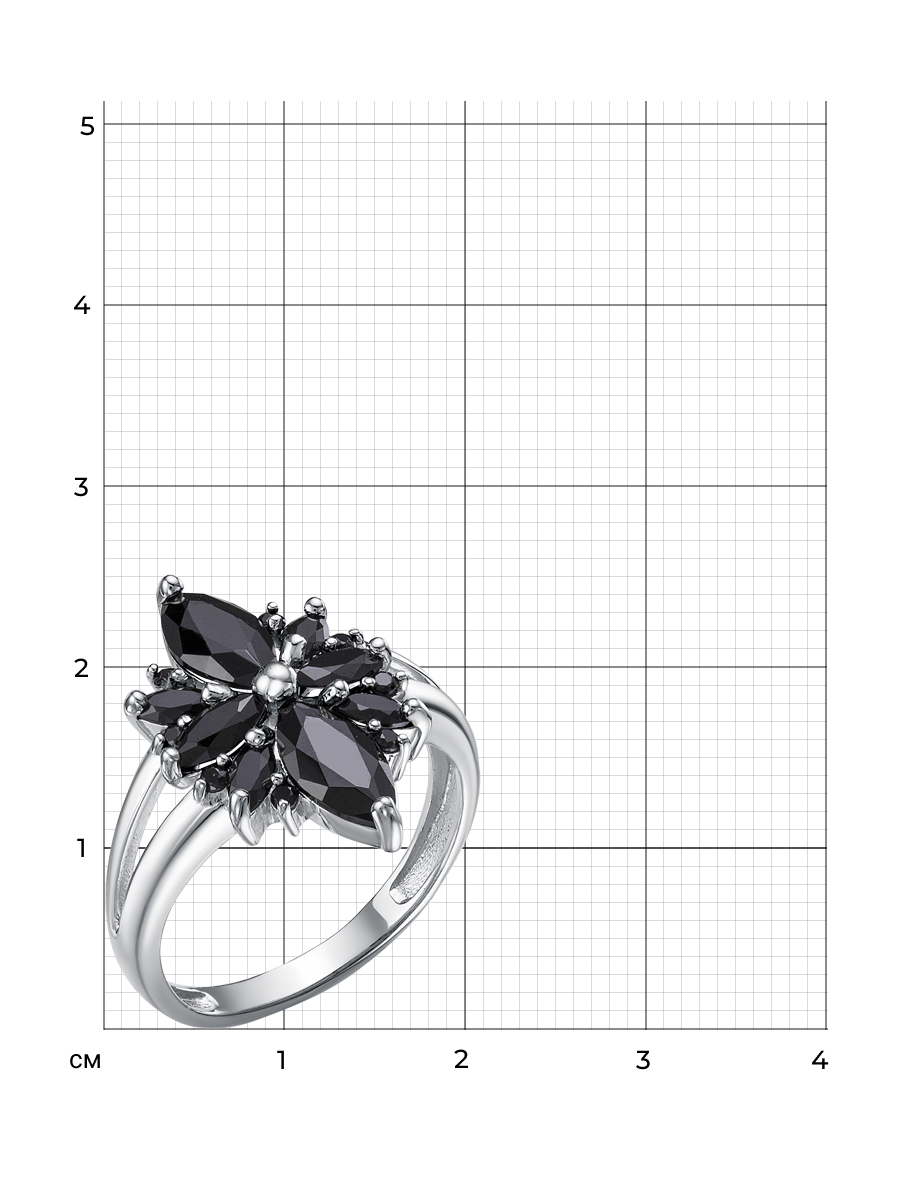 Кольцо выполнено из серебра 925 пробы с родиевым покрытием. Характеристики. Вставка 2 натуральных шпинели 8х4мм цвет чёрный огранка маркиз, 2 натуральных шпинели 5х2,5мм цвет чёрный огранка маркиз, 2 натуральных шпинели 4х2мм цвет чёрный огранка маркиз, 8 натуральных шпинелей 1,25мм цвет чёрный огранка круг. Высота декоративной части кольца 17,5мм, ширина 13 мм. Ширина шинки 2,3мм. Отличным дополнением к кольцу будут серьги арт. 2-04-342-11р. Берегите изделие от воздействия влаги, любых спиртосодержащих растворов и жидкостей, а также парфюма. Для ухода и чистки желательно использовать специальные салфетки для серебра. Приятным дополнением к ювелирному украшению является фирменная упаковка. Значение веса и габаритов в характеристиках примерные и могут отличаться от фактических.
