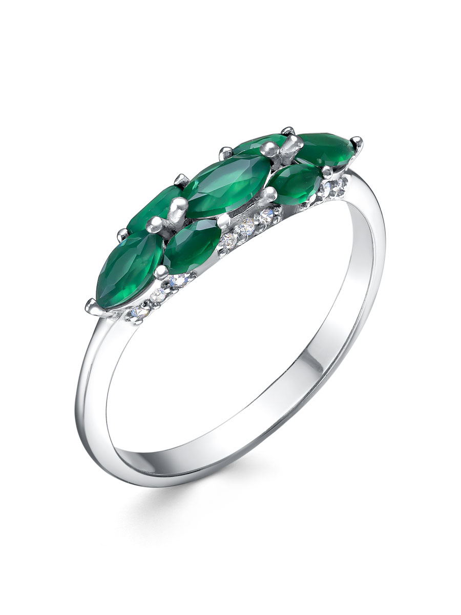 Кольцо выполнено из серебра 925 пробы с родиевым покрытием. Характеристики. Вставка 1 натуральный агат 6х3 мм цвет зелёный огранка маркиз, 2 натуральных агата 5х2,5 мм цвет зелёный огранка маркиз, 4 натуральных агата 4х2 мм цвет зелёный огранка маркиз, 18 недрагоценных бесцветных фианитов 1 мм огранка круг. Высота декоративной части кольца 4,7 мм. Ширина шинки 2 мм. Отличным дополнением к кольцу будут серьги арт. 2-04-437-07р. Берегите изделие от воздействия влаги, любых спиртосодержащих растворов и жидкостей, а также парфюма. Для ухода и чистки желательно использовать специальные салфетки для серебра. Приятным дополнением к ювелирному украшению является фирменная упаковка. Значение веса и габаритов в характеристиках примерные и могут отличаться от фактических.