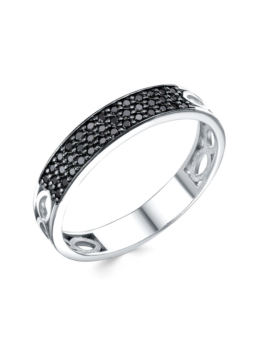 Кольцо выполнено из серебра 925 пробы с родиевым покрытием. Характеристики. Вставка 38 натуральных шпинелей 1 мм цвет чёрный огранка круг. Ширина шинки 4 мм, глубина 1,5 мм. Отличным дополнением к кольцу будут серьги арт.2-04-449-11р. Берегите изделие от воздействия влаги, любых спиртосодержащих растворов и жидкостей, а также парфюма. Для ухода и чистки желательно использовать специальные салфетки для серебра. Приятным дополнением к ювелирному украшению является фирменная упаковка. Значение веса и габаритов в характеристиках примерные и могут отличаться от фактических.