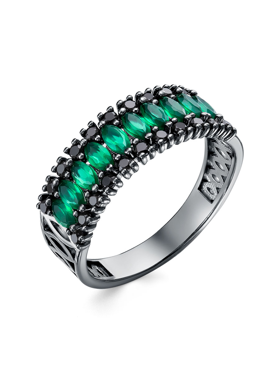 Кольцо выполнено из серебра 925 пробы с родиевым покрытием. Характеристики. Вставка 10 натуральных агатов 4х2 мм цвет зелёный огранка маркиз, 22 натуральных шпинели 1,5 мм цвет чёрный огранка круг. Высота декоративной части кольца 7 мм. Ширина шинки 3,5 мм. Отличным дополнением к кольцу будут серьги арт.2-04-472-07чр. Берегите изделие от воздействия влаги, любых спиртосодержащих растворов и жидкостей, а также парфюма. Для ухода и чистки желательно использовать специальные салфетки для серебра. Приятным дополнением к ювелирному украшению является фирменная упаковка. Значение веса и габаритов в характеристиках примерные и могут отличаться от фактических.