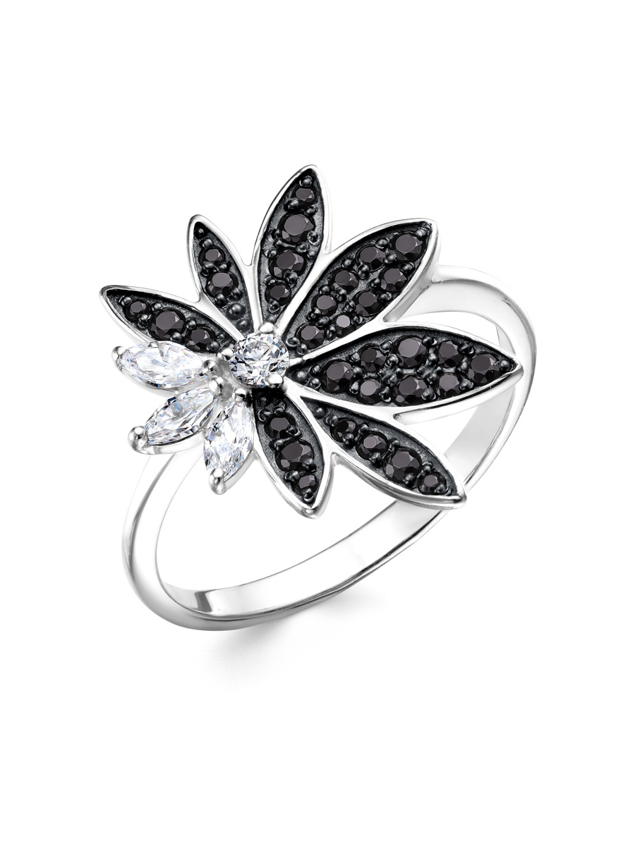 Кольцо выполнено из серебра 925 пробы с родиевым покрытием. Характеристики. Вставка 10 натуральных шпинелей 1,5 мм цвет чёрный огранка круг, 13 натуральных шпинелей 1,25 мм цвет чёрный огранка круг, 9 натуральных шпинелей 1 мм цвет чёрный огранка круг, 3 недрагоценных бесцветных фианита 4х2 мм огранка маркиз, 1 недрагоценный бесцветный фианит 2,5 мм огранка круг. Высота декоративной части кольца 18,4 мм, ширина цветка 16,2 мм, высота над пальцем 2 мм. Ширина шинки 2,2 мм. Отличным дополнением к кольцу будут серьги арт.2-04-732-11-12р. Берегите изделие от воздействия влаги, любых спиртосодержащих растворов и жидкостей, а также парфюма. Для ухода и чистки желательно использовать специальные салфетки для серебра. Приятным дополнением к ювелирному украшению является фирменная упаковка. Значение веса и габаритов в характеристиках примерные и могут отличаться от фактических.