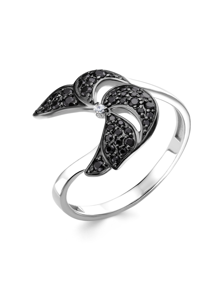 Кольцо выполнено из серебра 925 пробы с родиевым покрытием. Характеристики. Вставка 8 натуральных шпинелей 1,5 мм цвет чёрный огранка круг, 9 натуральных шпинелей 1,25 мм цвет чёрный огранка круг, 21 натуральная шпинель 1 мм цвет чёрный огранка круг, 1 недрагоценный бесцветный фианит 1,25 мм огранка круг. Высота декоративной части кольца 14,8 мм, высота над пальцем 2,2 мм. Ширина шинки 2,1 мм. Отличным дополнением к кольцу будут серьги арт.2-04-756-11-12р. Берегите изделие от воздействия влаги, любых спиртосодержащих растворов и жидкостей, а также парфюма. Для ухода и чистки желательно использовать специальные салфетки для серебра. Приятным дополнением к ювелирному украшению является фирменная упаковка. Значение веса и габаритов в характеристиках примерные и могут отличаться от фактических.
