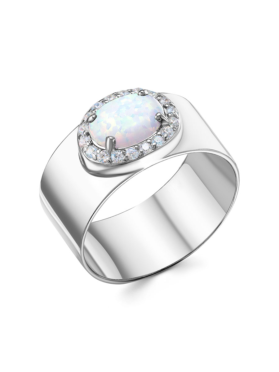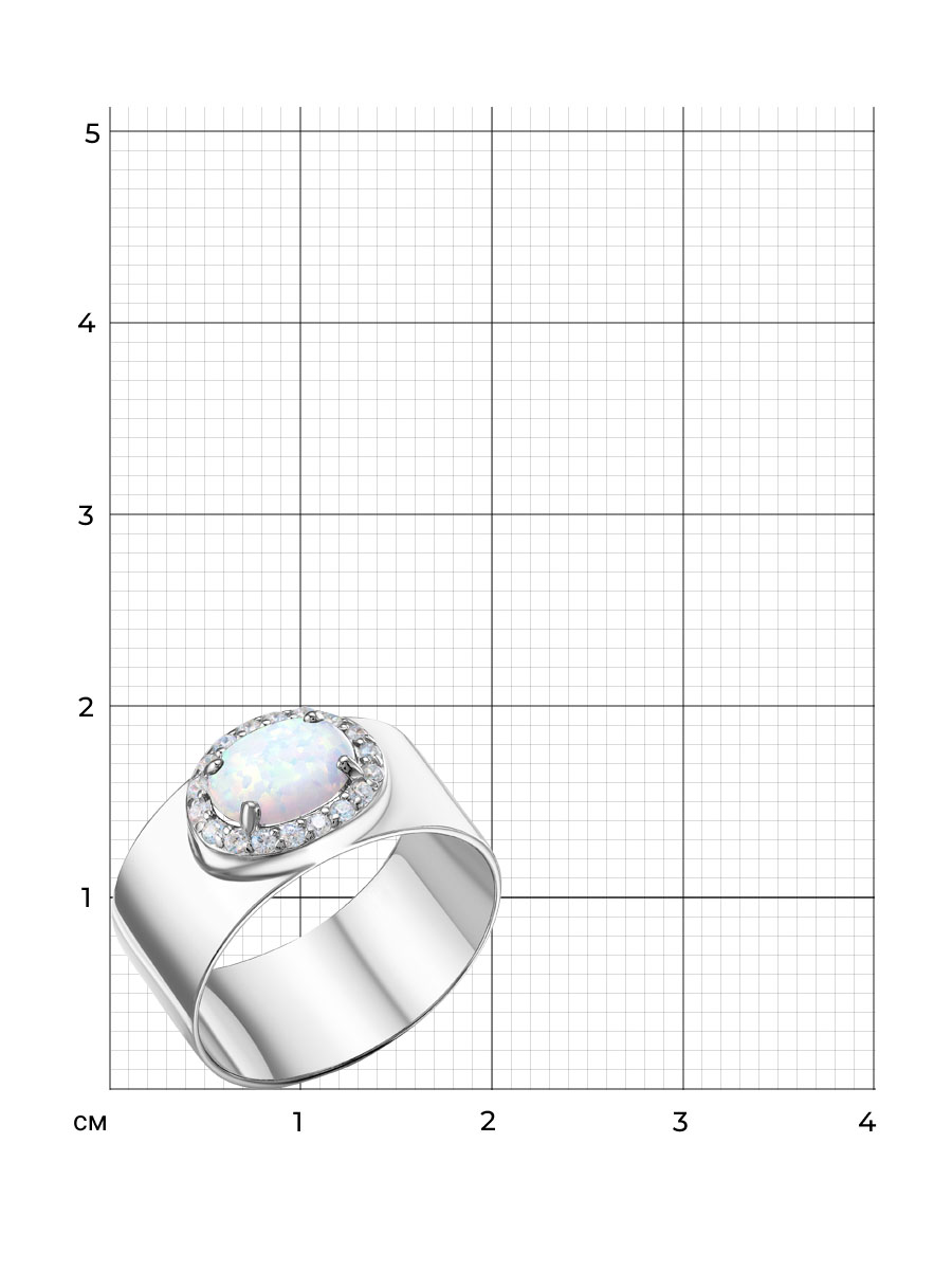 Стильное кольцо с белым опалом выполнено из серебра 925 пробы с родиевым покрытием. Характеристики. Вставка 1 синтетический опал 8х6мм цвет белый огранка кабошон овал, 18 недрагоценных бесцветных фианитов 1,25мм огранка круг. Ширина кольца 9мм, ширина декоративной части 11мм, глубина вместе с камнем 4мм. Берегите изделие от воздействия влаги, любых спиртосодержащих растворов и жидкостей, а также парфюма. Для ухода и чистки желательно использовать специальные салфетки для серебра. Приятным дополнением к ювелирному украшению является фирменная упаковка. Значение веса в характеристиках примерное и может отличаться от фактического.