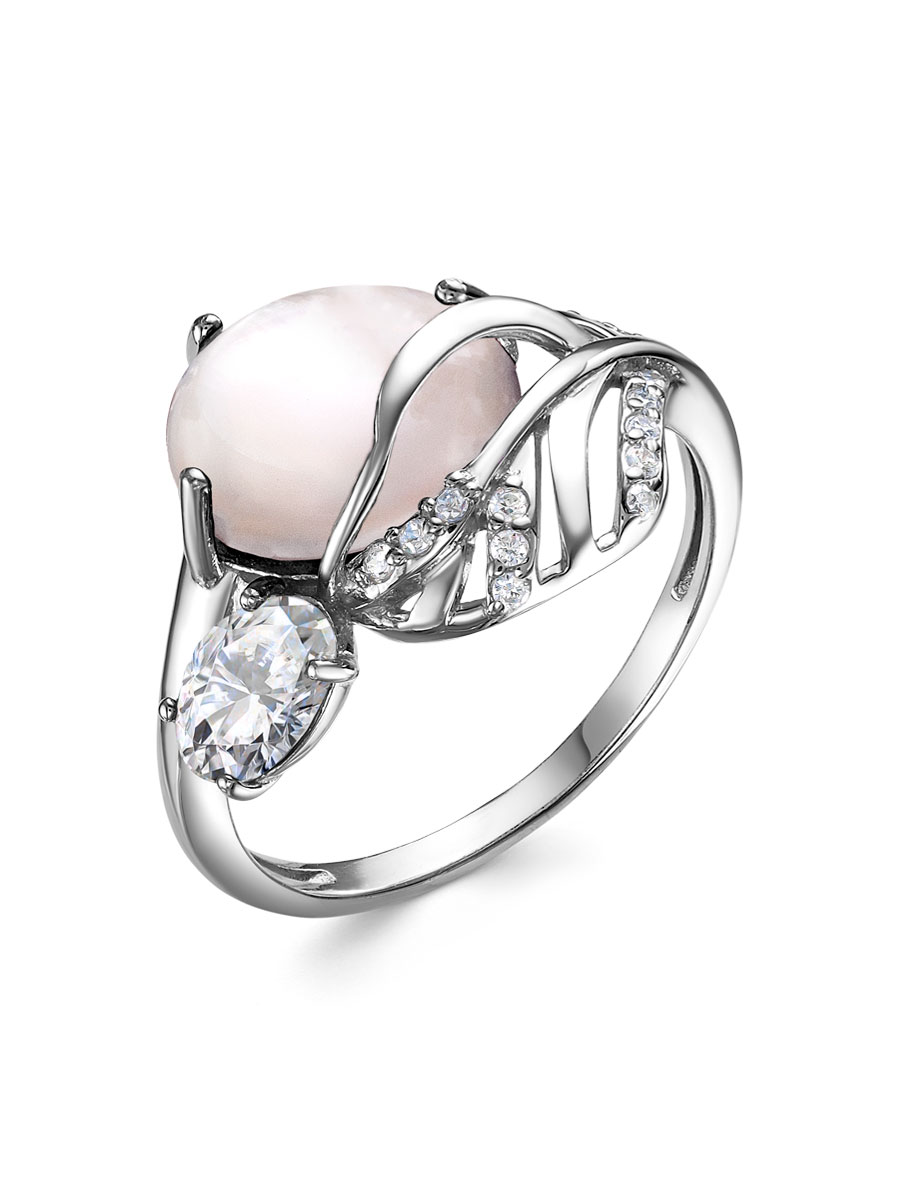Кольцо выполнено из серебра 925 пробы с родиевым покрытием. Характеристики. Вставка 1 натуральный перламутр 10х8 мм огранка овал, 1 недрагоценный бесцветный фианит 6х4 мм огранка овал, 16 недрагоценных бесцветных фианитов 1 мм огранка круг. Высота декоративной части кольца 13,5 мм, ширина 18,5 мм, глубина вместе с камнем 5,5 мм. Ширина шинки 2,1 мм. Отличным дополнением к кольцу будут серьги арт. 2-05-334-35р. Берегите изделие от воздействия влаги, любых спиртосодержащих растворов и жидкостей, а также парфюма. Для ухода и чистки желательно использовать специальные салфетки для серебра. Приятным дополнением к ювелирному украшению является фирменная упаковка. Значения веса и габаритов в характеристиках примерные и могут отличаться от фактических.