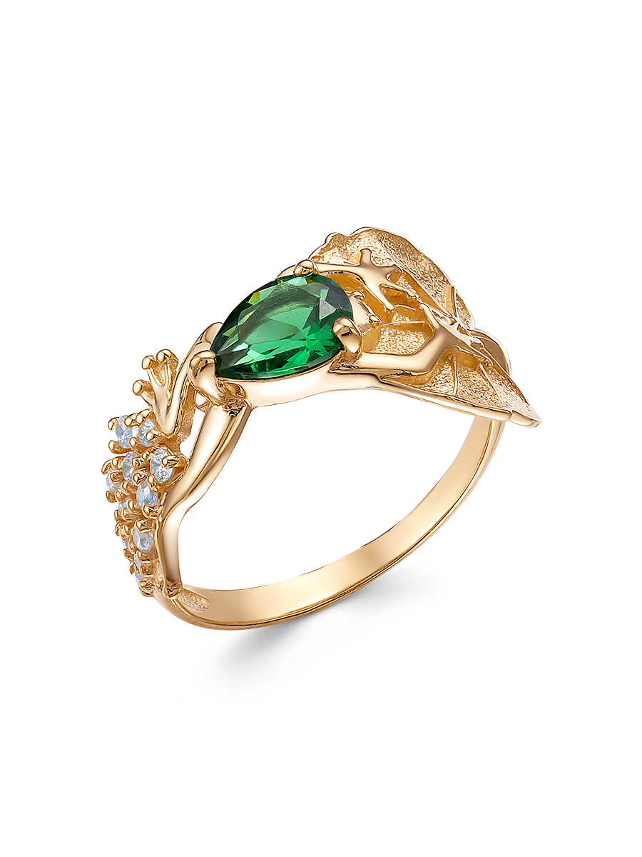 Кольцо Лягушка выполнено из серебра 925 пробы с золотым покрытием. Характеристики. Вставка 5 недрагоценных бесцветных фианитов 1,5мм огранка круг, 6 недрагоценных бесцветных фианитов 1,25мм огранка круг, 1 нано кристалл 7х5мм цвет изумруд огранка груша. Ширина декоративной части кольца 12,8мм, глубина вместе с камнем 3,5мм. Ширина шинки 2,2мм. Отличным дополнением к кольцу будут серьги арт.2-06-276-12з и подвеска арт.3-06-276-12з. Берегите изделие от воздействия влаги, любых спиртосодержащих растворов и жидкостей, а также парфюма. Для ухода и чистки желательно использовать специальные салфетки для серебра. Приятным дополнением к ювелирному украшению является фирменная упаковка. Значение веса и габаритов в характеристиках примерные и могут отличаться от фактических.