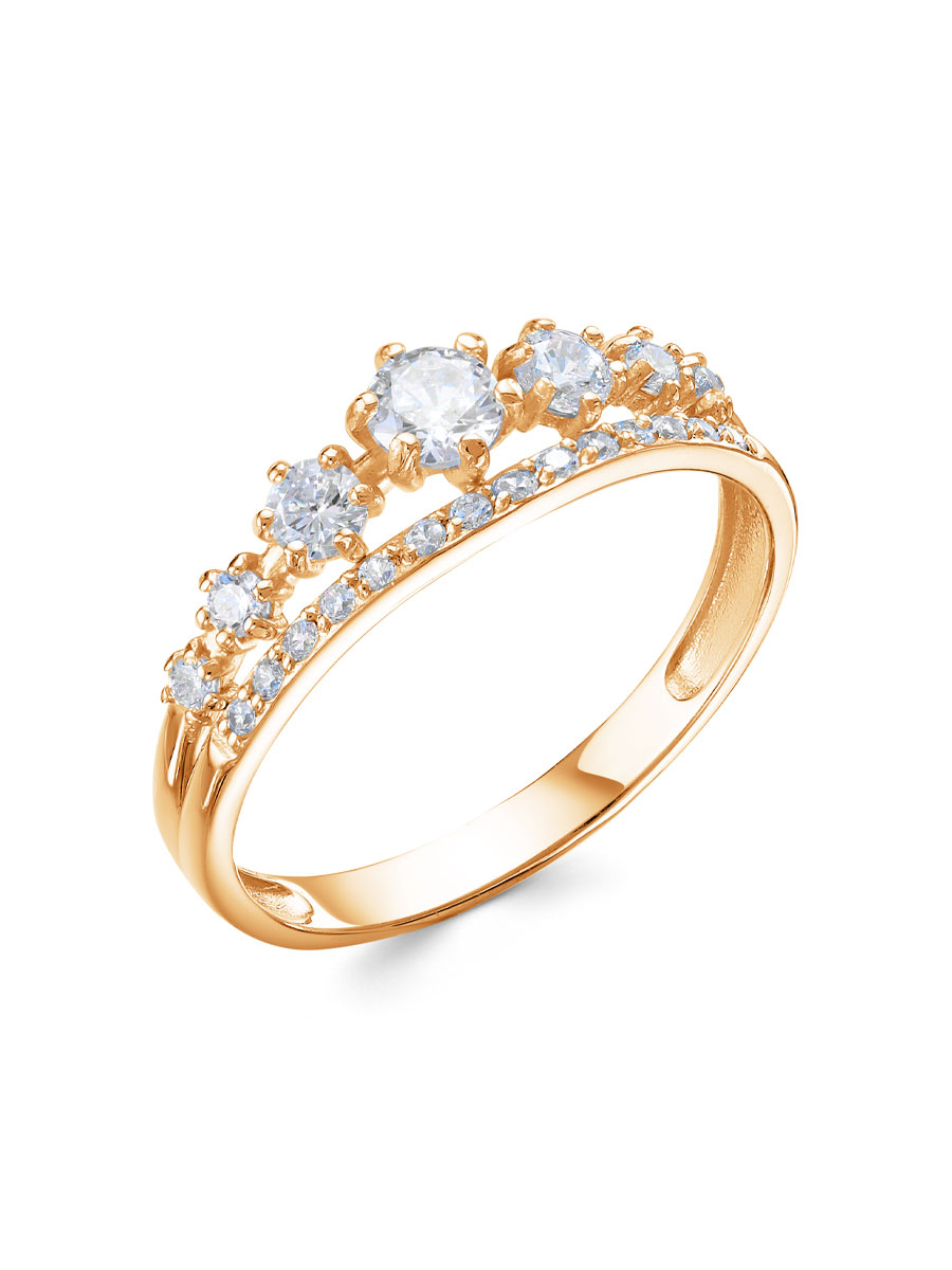 Кольцо выполнено из серебра 925 пробы с золотым покрытием. Характеристики. Вставка 1 недрагоценный бесцветный фианит 4 мм огранка круг, 2 недрагоценных бесцветных фианита 3 мм огранка круг, 2 недрагоценных бесцветных фианита 2 мм огранка круг, 2 недрагоценных бесцветных фианита 1,75 мм огранка круг, 14 недрагоценных бесцветных фианитов 1,25 мм огранка круг. Высота кольца 6 мм, ширина шинки 2 мм. Берегите изделие от воздействия влаги, любых спиртосодержащих растворов и жидкостей, а также парфюма. Для ухода и чистки желательно использовать специальные салфетки для серебра. Приятным дополнением к ювелирному украшению является фирменная упаковка. Значение веса и габаритов в характеристиках примерные и могут отличаться от фактических.