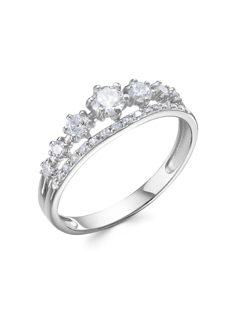 Кольцо выполнено из серебра 925 пробы с родиевым покрытием. Характеристики. Вставка 1 недрагоценный бесцветный фианит 4 мм огранка круг, 2 недрагоценных бесцветных фианита 3 мм огранка круг, 2 недрагоценных бесцветных фианита 2 мм огранка круг, 2 недрагоценных бесцветных фианита 1,75 мм огранка круг, 14 недрагоценных бесцветных фианитов 1,25 мм огранка круг. Высота кольца 6 мм, ширина шинки 2 мм. Берегите изделие от воздействия влаги, любых спиртосодержащих растворов и жидкостей, а также парфюма. Для ухода и чистки желательно использовать специальные салфетки для серебра. Приятным дополнением к ювелирному украшению является фирменная упаковка. Значение веса и габаритов в характеристиках примерные и могут отличаться от фактических.