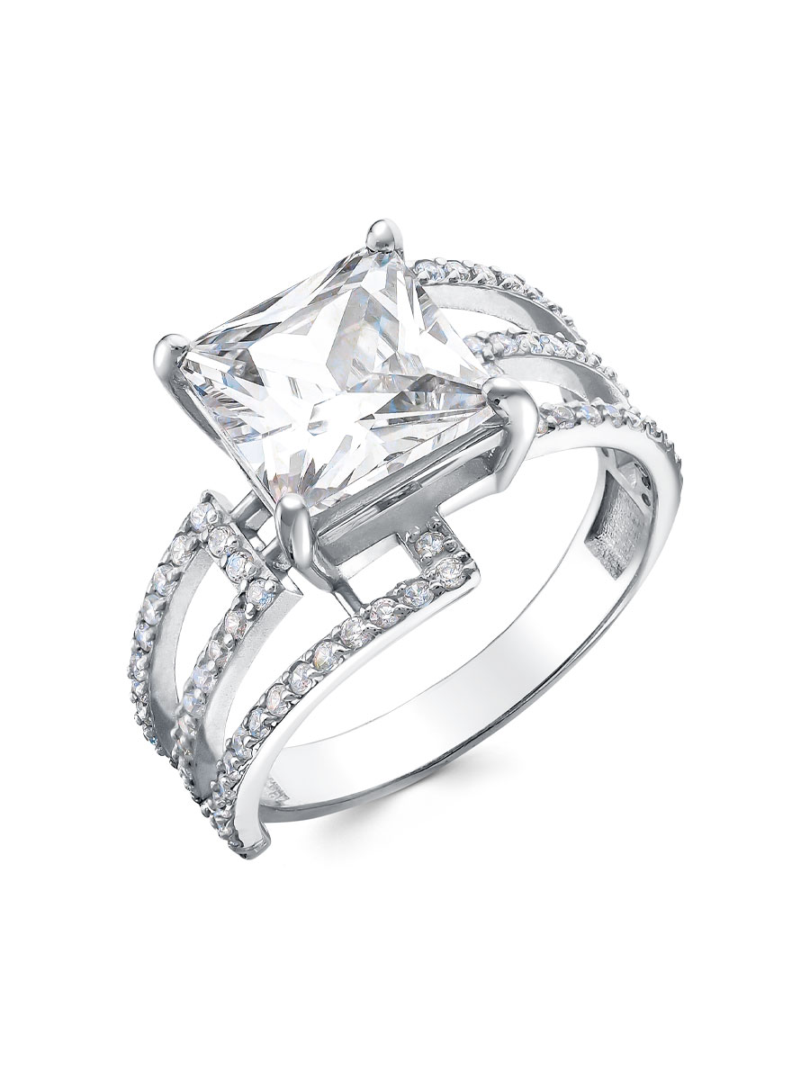 Кольцо выполнено из серебра 925 пробы с родиевым покрытием. Характеристики. Вставка 1 недрагоценный бесцветный фианит 8х8 мм огранка квадрат, 78 недрагоценных бесцветных фианитов 1 мм огранка круг. Высота декоративной части 13 мм, глубина 6 мм. Ширина шинки 3 мм. Берегите изделие от воздействия влаги, любых спиртосодержащих растворов и жидкостей, а также парфюма. Для ухода и чистки желательно использовать специальные салфетки для серебра. Приятным дополнением к ювелирному украшению является фирменная упаковка. Значение веса и габаритов в характеристиках примерные и могут отличаться от фактических.