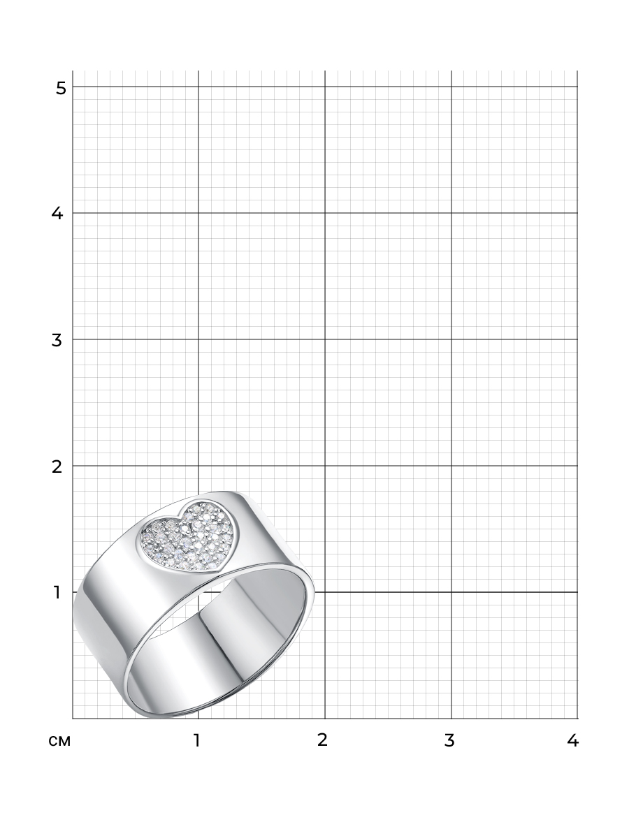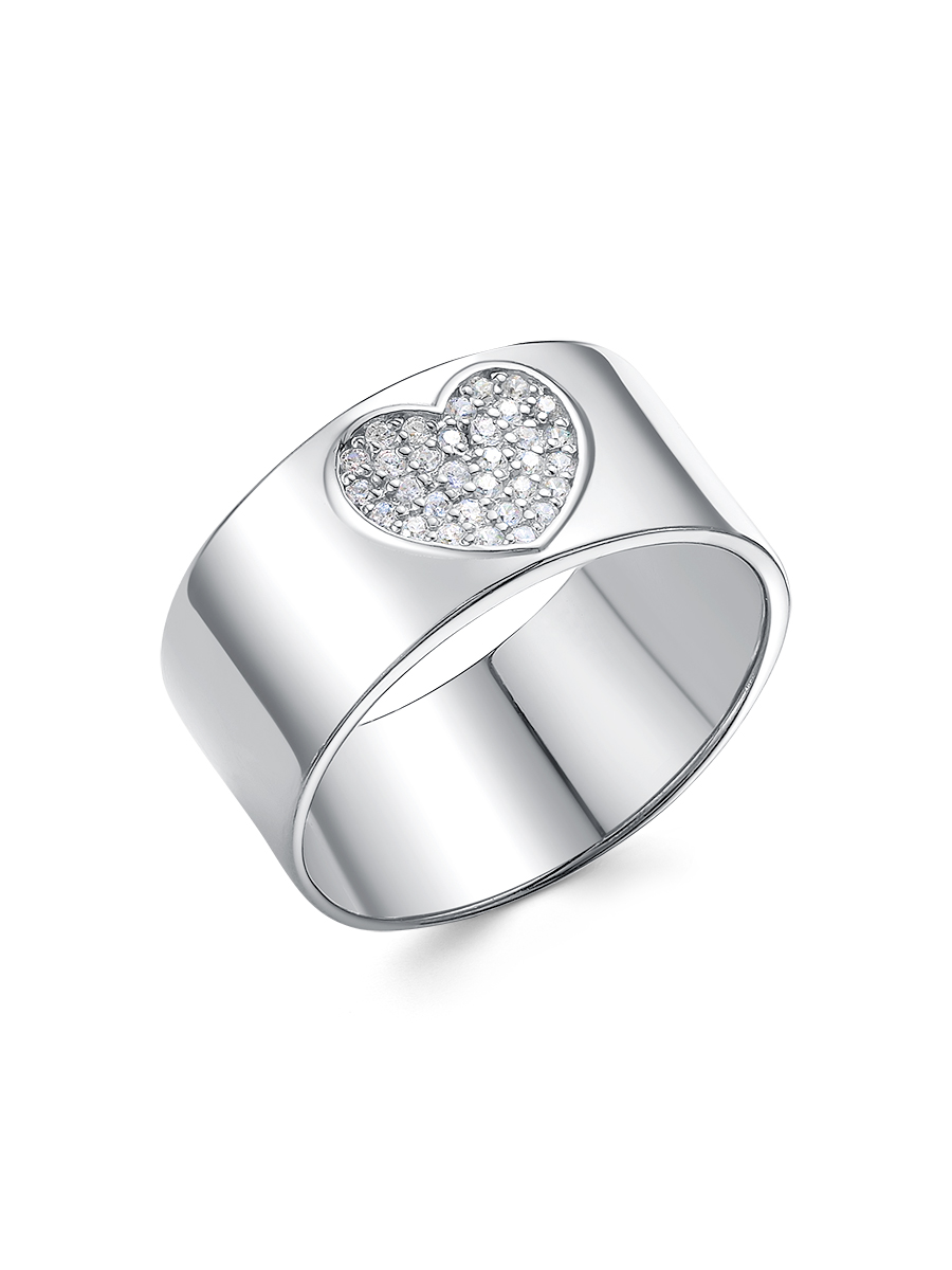 Кольцо выполнено из серебра 925 пробы с родиевым покрытием. Характеристики. Вставка 32 недрагоценных бесцветных фианита 1мм огранка круг. Ширина шинки 9мм, глубина 1мм. Ширина сердца 9 мм. Отличным дополнением к кольцу будут серьги арт.2-08-275-12р и подвеска арт.3-08-275-12р. Берегите изделие от воздействия влаги, любых спиртосодержащих растворов и жидкостей, а также парфюма. Для ухода и чистки желательно использовать специальные салфетки для серебра. Приятным дополнением к ювелирному украшению является фирменная упаковка. Значение веса и габаритов в характеристиках примерные и могут отличаться от фактических.