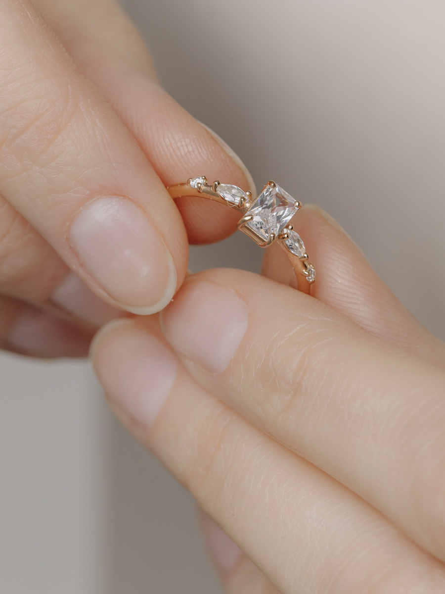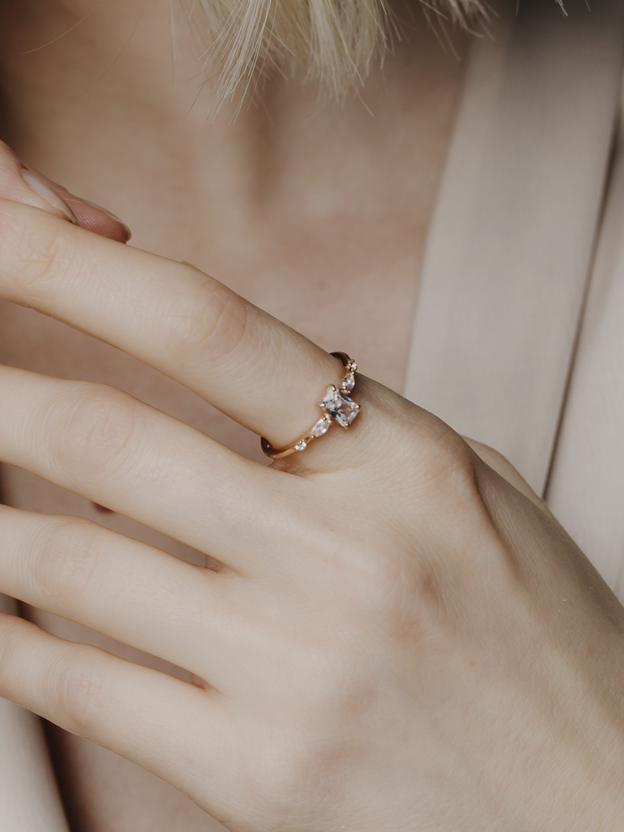 Наборное кольцо со вставками выполнено из серебра 925 пробы с золотым покрытием. Характеристики. Вставка 1 недрагоценный бесцветный фианит 6х4мм огранка октагон, 2 недрагоценных бесцветных фианита 1,5мм огранка круг, 2 недрагоценных бесцветных фианита 4х2мм огранка маркиз. Ширина декоративной части кольца 6,3мм, глубина вместе с камнем 6,3мм. Ширина шинки 1,2мм. Берегите изделие от воздействия влаги, любых спиртосодержащих растворов и жидкостей, а также парфюма. Для ухода и чистки желательно использовать специальные салфетки для серебра. Приятным дополнением к ювелирному украшению является фирменная упаковка. Значение веса и габаритов в характеристиках примерные и могут отличаться от фактических.
