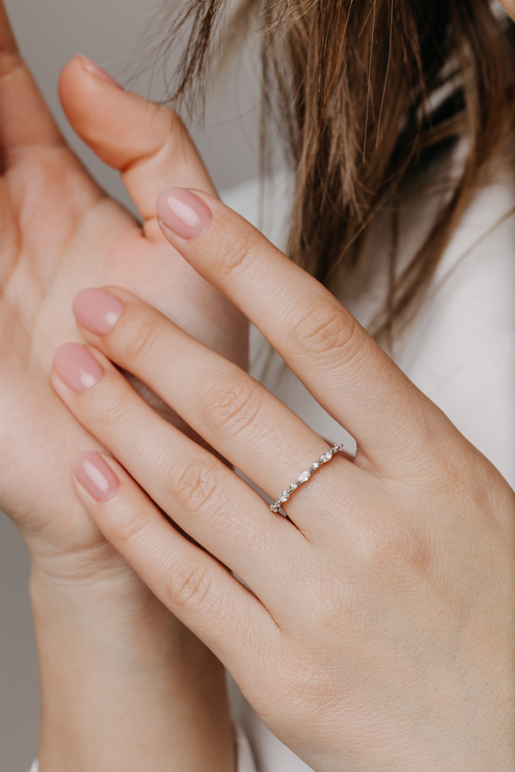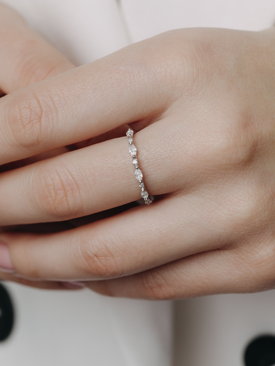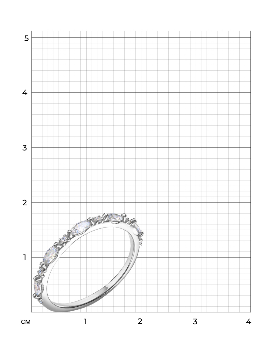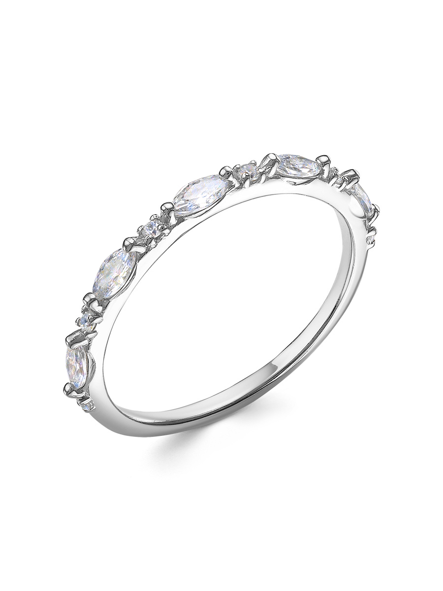 Тонкое кольцо со вставками выполнено из серебра 925 пробы с родиевым покрытием. Характеристики. Вставка 6 недрагоценных бесцветных фианитов 1,25мм огранка круг, 5 недрагоценных бесцветных фианитов 4х2мм огранка маркиз. Ширина декоративной части кольца 2мм, глубина 2,5мм. Ширина шинки 1,2мм. Берегите изделие от воздействия влаги, любых спиртосодержащих растворов и жидкостей, а также парфюма. Для ухода и чистки желательно использовать специальные салфетки для серебра. Приятным дополнением к ювелирному украшению является фирменная упаковка. Значение веса и габаритов в характеристиках примерные и могут отличаться от фактических.