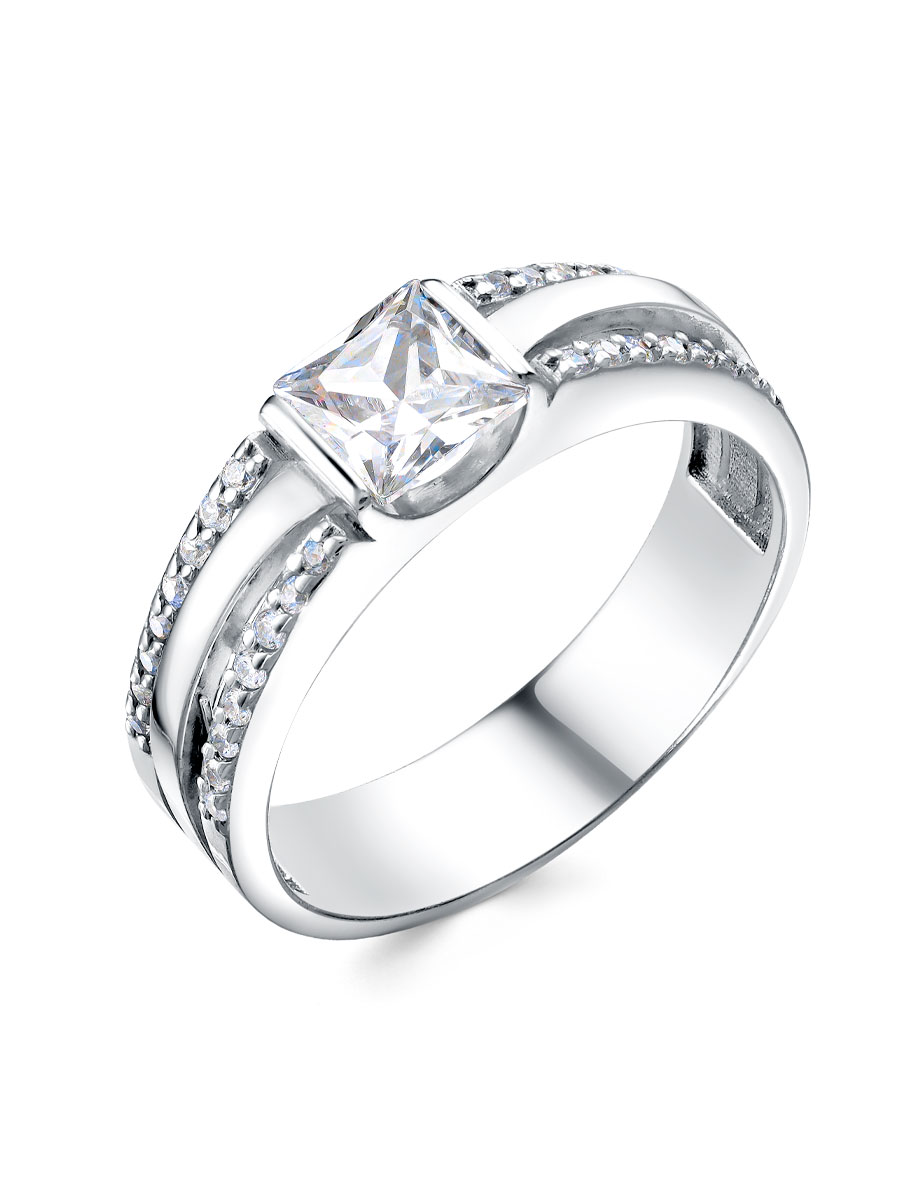 Кольцо выполнено из серебра 925 пробы с родиевым покрытием. Характеристики. Вставка 1 недрагоценный бесцветный фианит 5х5 мм огранка квадрат, 32 недрагоценных бесцветных фианита 1 мм огранка круг. Высота декоративной части кольца 5 мм. Ширина шинки 4,8 мм. Берегите изделие от воздействия влаги, любых спиртосодержащих растворов и жидкостей, а также парфюма. Для ухода и чистки желательно использовать специальные салфетки для серебра. Приятным дополнением к ювелирному украшению является фирменная упаковка. Значение веса и габаритов в характеристиках примерные и могут отличаться от фактических.