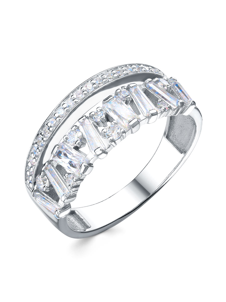 Кольцо выполнено из серебра 925 пробы с родиевым покрытием. Характеристики. Вставка 2 недрагоценных бесцветных фианита 4х2 мм огранка багет, 6 недрагоценных бесцветных фианитов 4х1,5х1 мм огранка трапеция, 4 недрагоценных бесцветных фианита 1,75 мм огранка круг, 4 недрагоценных бесцветных фианита 1,25 мм огранка круг, 19 недрагоценных бесцветных фианитов 1 мм огранка круг. Высота декоративной части кольца 7,7 мм. Ширина шинки 3 мм. Берегите изделие от воздействия влаги, любых спиртосодержащих растворов и жидкостей, а также парфюма. Для ухода и чистки желательно использовать специальные салфетки для серебра. Приятным дополнением к ювелирному украшению является фирменная упаковка. Значение веса и габаритов в характеристиках примерные и могут отличаться от фактических.
