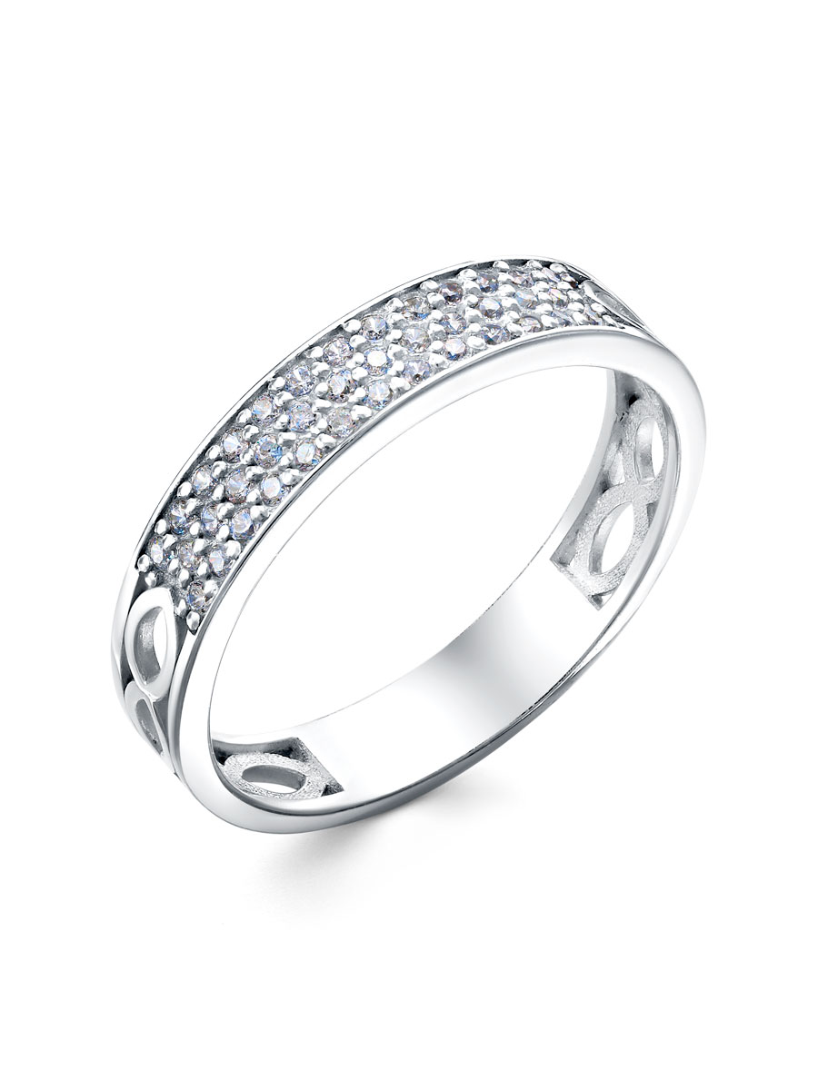 Кольцо выполнено из серебра 925 пробы с родиевым покрытием. Характеристики. Вставка 38 недрагоценных бесцветных фианитов 1 мм огранка круг. Ширина шинки 4 мм, глубина 1,5 мм. Отличным дополнением к кольцу будут серьги арт.2-08-449-12р. Берегите изделие от воздействия влаги, любых спиртосодержащих растворов и жидкостей, а также парфюма. Для ухода и чистки желательно использовать специальные салфетки для серебра. Приятным дополнением к ювелирному украшению является фирменная упаковка. Значение веса и габаритов в характеристиках примерные и могут отличаться от фактических.