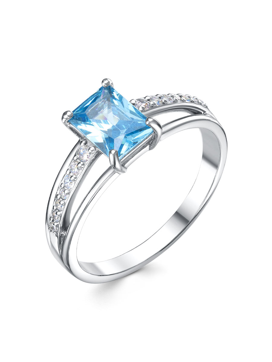 Кольцо выполнено из серебра 925 пробы с родиевым покрытием. Характеристики. Вставка 1 недрагоценный фианит 7х5 мм цвет аква огранка багет, 2 недрагоценных бесцветных фианита 1,5 мм огранка круг, 4 недрагоценных бесцветных фианита 1,25 мм огранка круг, 8 недрагоценных бесцветных фианитов 1 мм огранка круг. Высота декоративной части кольца 7,8 мм. Ширина шинки 2 мм. Отличным дополнением к кольцу будут серьги арт.2-08-467-08р. Берегите изделие от воздействия влаги, любых спиртосодержащих растворов и жидкостей, а также парфюма. Для ухода и чистки желательно использовать специальные салфетки для серебра. Приятным дополнением к ювелирному украшению является фирменная упаковка. Значение веса и габаритов в характеристиках примерные и могут отличаться от фактических.