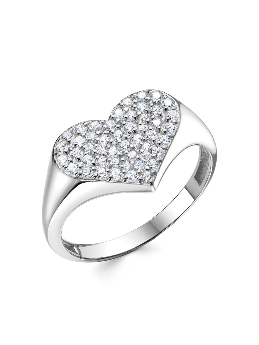 Кольцо выполнено из серебра 925 пробы с родиевым покрытием. Характеристики. Вставка 37 недрагоценных бесцветных фианитов 1,25 мм огранка круг, 11 недрагоценных бесцветных фианитов 1 мм огранка круг. Высота декоративной части кольца 10,5 мм, ширина сердца 13,5 мм, высота над пальцем 2 мм. Ширина шинки 2 мм. Берегите изделие от воздействия влаги, любых спиртосодержащих растворов и жидкостей, а также парфюма. Для ухода и чистки желательно использовать специальные салфетки для серебра. Приятным дополнением к ювелирному украшению является фирменная упаковка. Значение веса и габаритов в характеристиках примерные и могут отличаться от фактических.