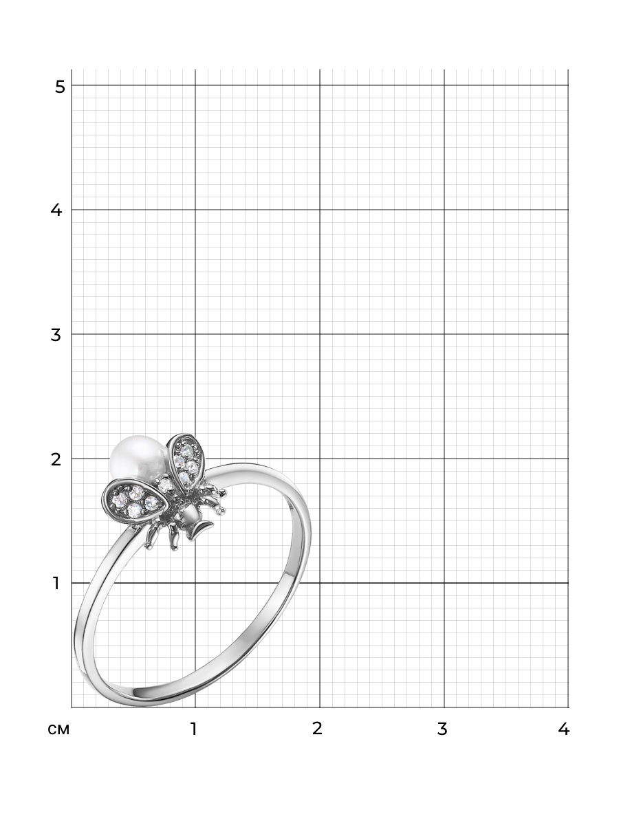 Кольцо Маленькая муха с жемчужиной выполнено из серебра 925 пробы с родиевым покрытием. Характеристики. Вставка 1 жемчужина 4мм белая круглая, 9 недрагоценных бесцветных фианитов 1мм огранка круг. Высота декоративной части 9мм, ширина 8,3мм, глубина вместе с камнями 4,5мм. Ширина шинки 1,7 мм. Отличным дополнением к кольцу будут серьги арт.2-10-023-15р и подвеска арт.3-10-023-15р. Берегите изделие от воздействия влаги, любых спиртосодержащих растворов и жидкостей, а также парфюма. Для ухода и чистки желательно использовать специальные салфетки для серебра. Приятным дополнением к ювелирному украшению является фирменная упаковка. Значение веса в характеристиках является примерным и может отличаться от фактического.