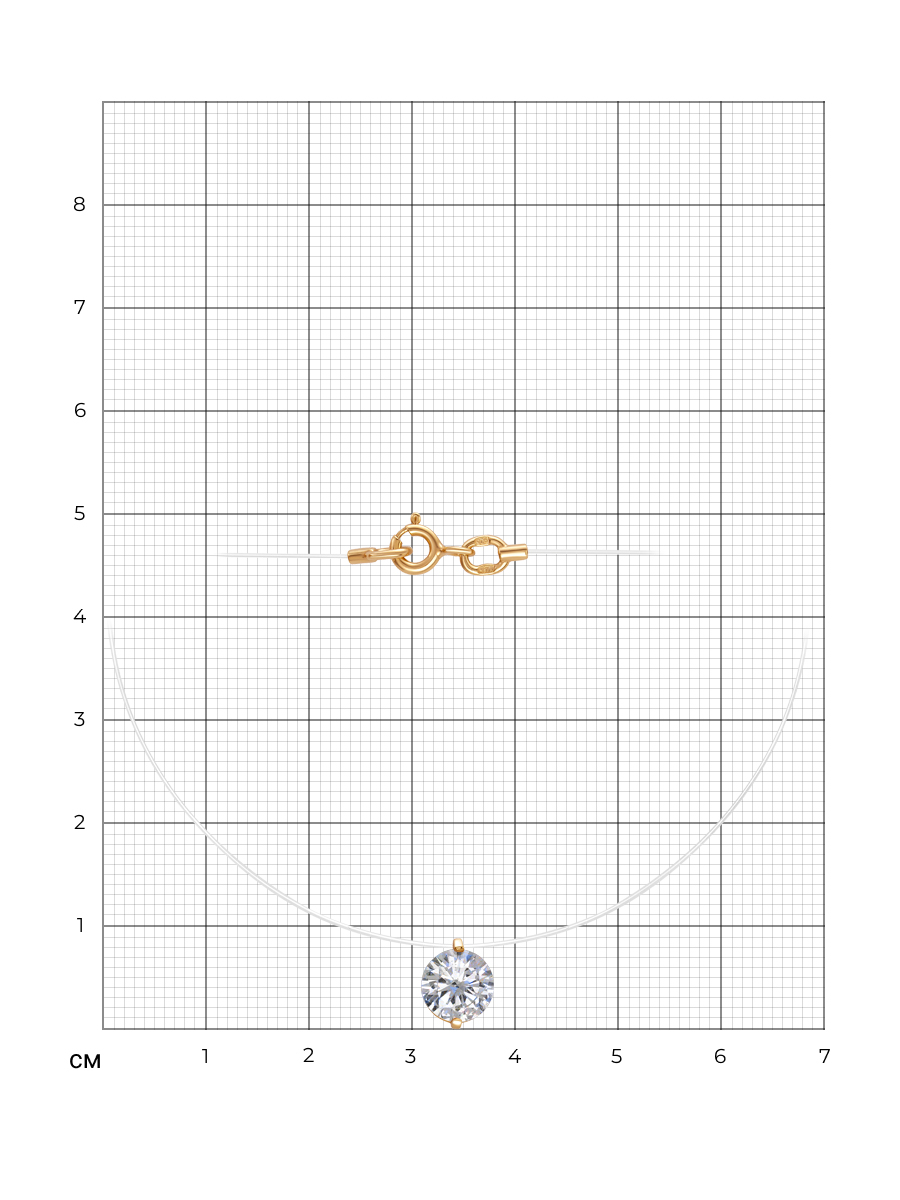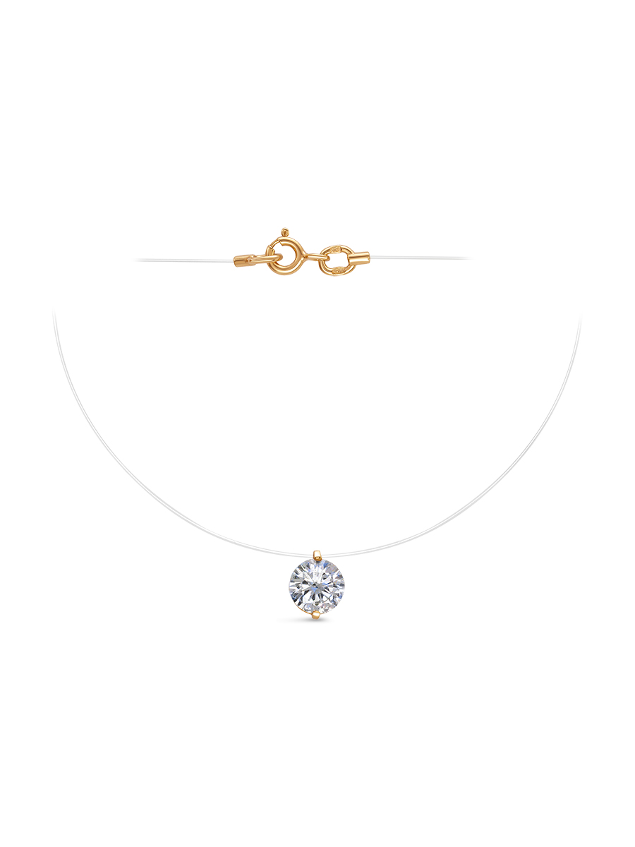 Колье-невидимка выполнено из серебра 925 пробы с золотым покрытием. Характеристики. Вставка 1 недрагоценный бесцветный фианит 7мм огранка круг. Высота подвески 8,5мм, ширина 7мм, глубина вместе с камнем 4,7мм. Подвеска несъёмная. Берегите изделие от воздействия влаги, любых спиртосодержащих растворов и жидкостей, а также парфюма. Для ухода и чистки желательно использовать специальные салфетки для серебра. Приятным дополнением к ювелирному украшению является фирменная упаковка. Значение веса в характеристиках примерное и может отличаться от фактического.