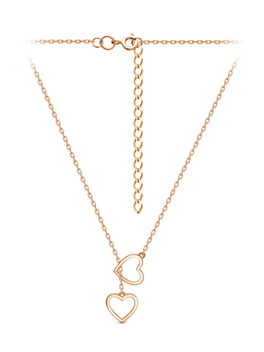 Колье выполнено из серебра 925 пробы c золотым покрытием. Характеристики. Высота каждого сердечка 9,5 мм, ширина 10,4 мм, глубина 1 мм. Подвеска несъёмная. Замок шпрингельный. Есть возможность увеличить размер колье на 50 мм. Берегите изделие от воздействия влаги, любых спиртосодержащих растворов и жидкостей, а также парфюма. Для ухода и чистки желательно использовать специальные салфетки для серебра. Приятным дополнением к ювелирному украшению является фирменная упаковка. Значение веса и габаритов в характеристиках примерные и могут отличаться от фактических.