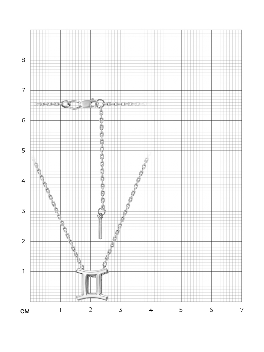 Колье Знак зодиака Близнецы выполнено из серебра 925 пробы с родиевым покрытием. Характеристики. Высота подвески 10,5мм, ширина 10,8мм, глубина 2,8мм. Замок карабин. Есть возможность удлинить колье на 50мм. Подвеска не снимается. Берегите изделие от воздействия влаги, любых спиртосодержащих растворов и жидкостей, а также парфюма. Для ухода и чистки желательно использовать специальные салфетки для серебра. Приятным дополнением к ювелирному украшению является фирменная упаковка. Значение веса в характеристиках примерное и может отличаться от фактического.
