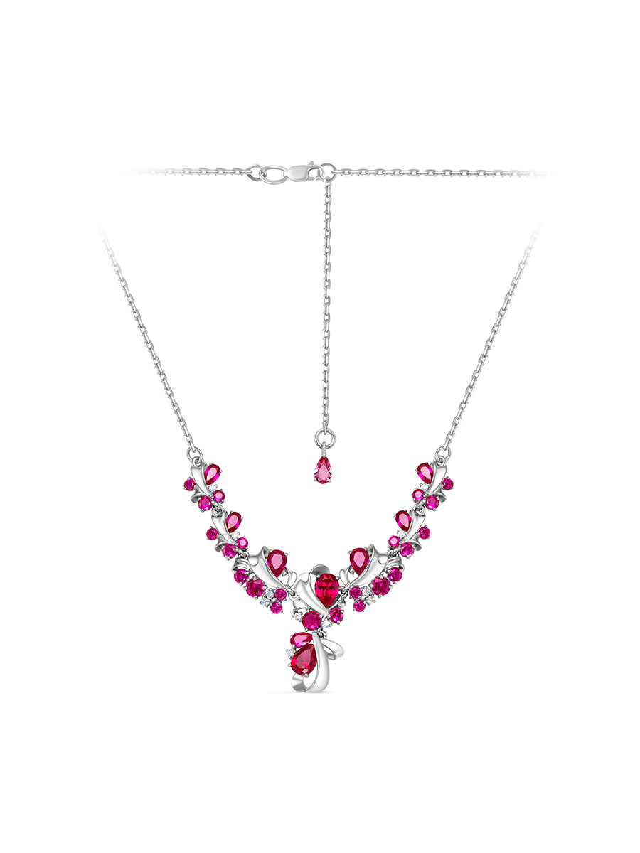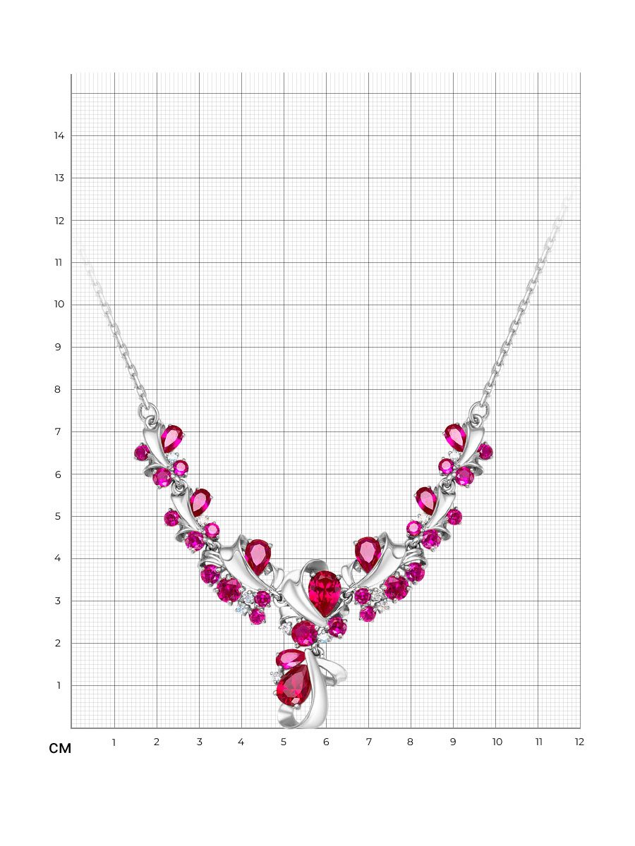 Элегантное колье выполнено из серебра 925 пробы с родиевым покрытием. Характеристики. Вставка 2 корунд рубина 7х5мм цвет красный огранка груша, 2 корунд рубина 6х4мм цвет красный огранка груша, 6 корунд рубинов 5х3мм цвет красный огранка груша, 3 корунд рубина 4мм цвет красный огранка круг, недрагоценные фианиты. Высота центральной части 27мм, высота подвесной части 13,5мм. Замок карабин. Есть возможность увеличить размер колье на 50мм. Отличным дополнением к колье будут кольцо арт.1-04-123-02р и серьги арт.2-04-123-02р. Берегите изделие от воздействия влаги, любых спиртосодержащих растворов и жидкостей, а также парфюма. Для ухода и чистки желательно использовать специальные салфетки для серебра. Приятным дополнением к ювелирному украшению является фирменная упаковка. Значение веса в характеристиках примерное и может отличаться от фактического.