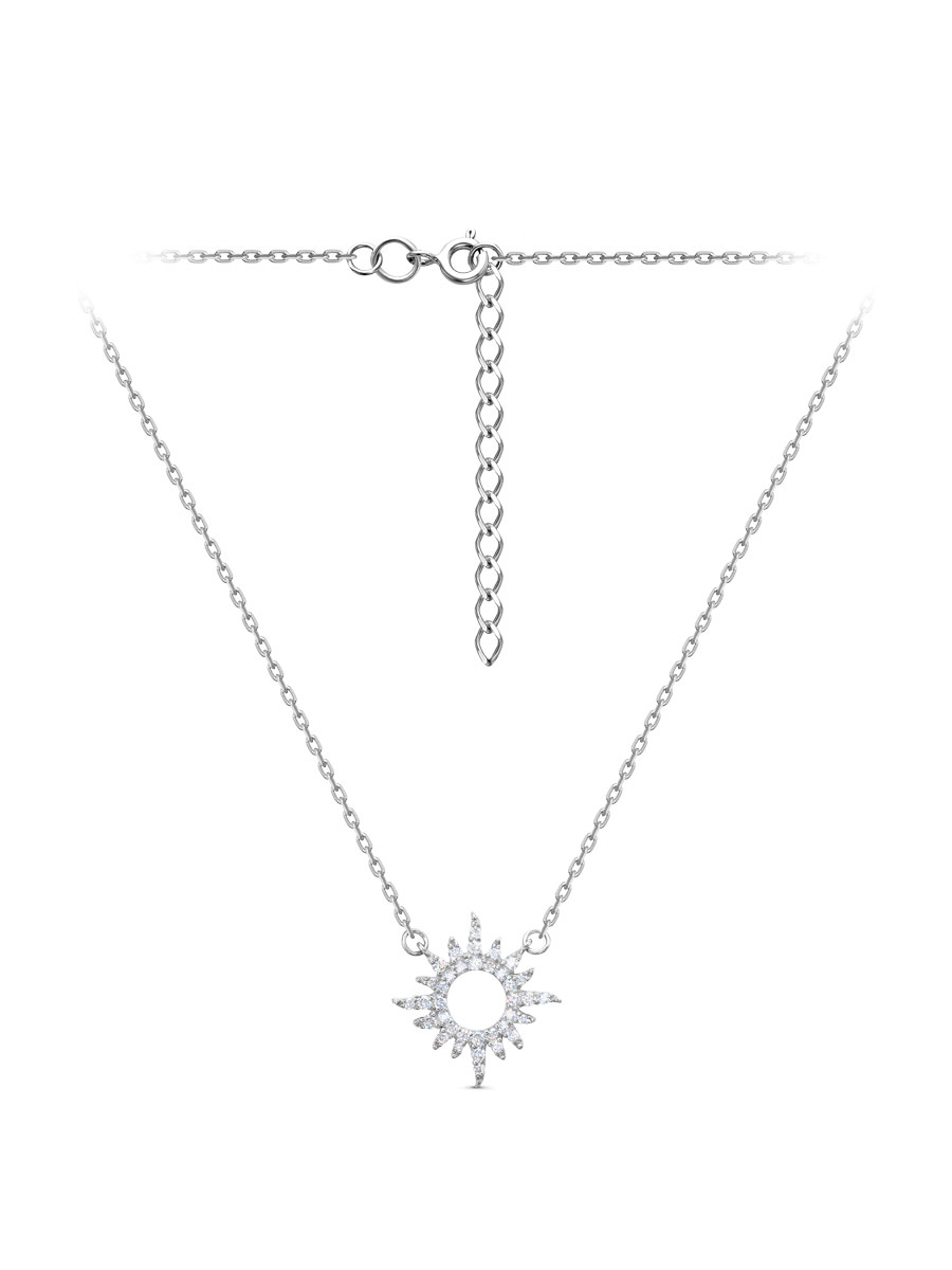 Колье выполнено из серебра 925 пробы с родиевым покрытием. Характеристики. Вставка 12 недрагоценных бесцветных фианитов 1,5 мм огранка круг, 21 недрагоценный бесцветный фианит 1,25 мм огранка круг, 3 недрагоценных бесцветных фианита 1 мм огранка круг. Высота подвески 18,7 мм, ширина 18,5 мм, глубина 1,8 мм. Диаметр внутреннего круга 6 мм. Подвеска несъёмная. Толщина цепочки 1,4 мм. Замок шпрингельный. Есть возможность удлинить колье на 50 мм. Берегите изделие от воздействия влаги, любых спиртосодержащих растворов и жидкостей, а также парфюма. Для ухода и чистки желательно использовать специальные салфетки для серебра. Приятным дополнением к ювелирному украшению является фирменная упаковка. Значение веса и габаритов в характеристиках примерные и могут отличаться от фактических.