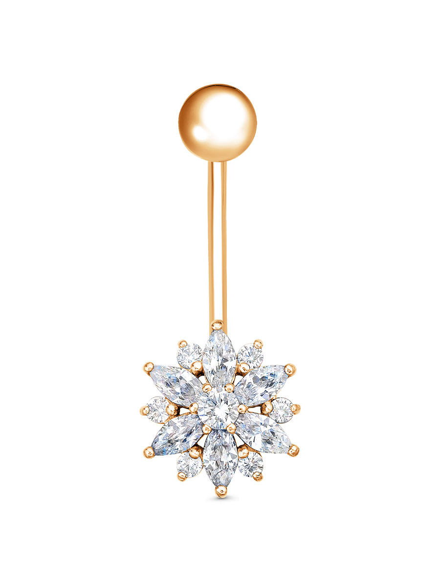 Пирсинг для пупка из серебра 925 пробы с золотым покрытием. Характеристики. Вставка 6 недрагоценных бесцветных фианитов 4х2 мм огранка маркиз, 6 недрагоценных бесцветных фианитов 1,5 мм огранка круг, 1 недрагоценный бесцветный фианит 2,5 мм огранка круг. Высота пирсинга 25 мм, высота декоративной части 10,3 мм, ширина 9,7 мм, глубина 3 мм. Рабочая высота штанги 12 мм, толщина 1,2 мм. Диаметр закручивающегося шарика 4,5 мм. Отличным дополнением к пирсингу будут серьги арт. 2-08-288-12з. Берегите изделие от воздействия влаги, любых спиртосодержащих растворов и жидкостей, а также парфюма. Для ухода и чистки желательно использовать специальные салфетки для серебра. Приятным дополнением к украшению является фирменная упаковка. Значение веса и габаритов в характеристиках примерные и могут отличаться от фактических.