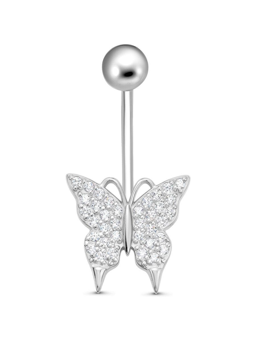 Пирсинг для пупка из серебра 925 пробы с родиевым покрытием. Характеристики. Вставка 36 недрагоценных бесцветных фианитов 1 мм огранка круг. Высота пирсинга 24,5 мм, высота декоративной части 12 мм, ширина 12,3 мм. Рабочая высота штанги 12 мм, толщина 1,2 мм. Диаметр закручивающегося шарика 4,5 мм. Берегите изделие от воздействия влаги, любых спиртосодержащих растворов и жидкостей, а также парфюма. Для ухода и чистки желательно использовать специальные салфетки для серебра. Приятным дополнением к украшению является фирменная упаковка. Значение веса и габаритов в характеристиках примерные и могут отличаться от фактических.
