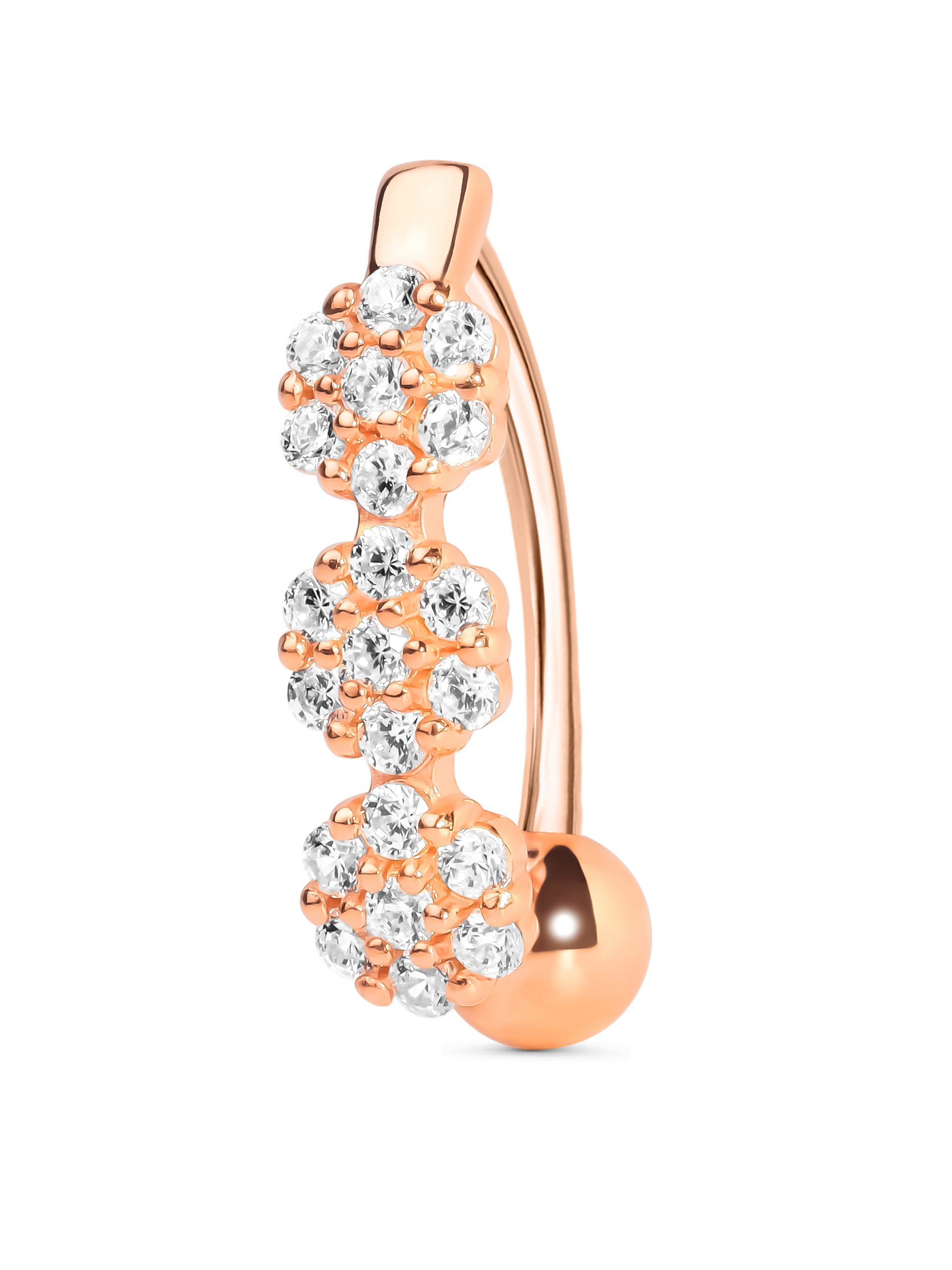 Пирсинг для пупка из серебра 925 пробы с золотым покрытием. Характеристики. Вставка 21 недрагоценный бесцветный фианит 1,5 мм огранка круг. Высота декоративной части 17 мм, ширина 4,8 мм. Рабочая длина штанги 13 мм, толщина 1,2 мм. Диаметр завинчивающегося шарика 4,5 мм. Берегите изделие от воздействия влаги, любых спиртосодержащих растворов и жидкостей, а также парфюма. Для ухода и чистки желательно использовать специальные салфетки для серебра. Приятным дополнением к украшению является фирменная упаковка. Значение веса и габаритов в характеристиках примерные и могут отличаться от фактических.
