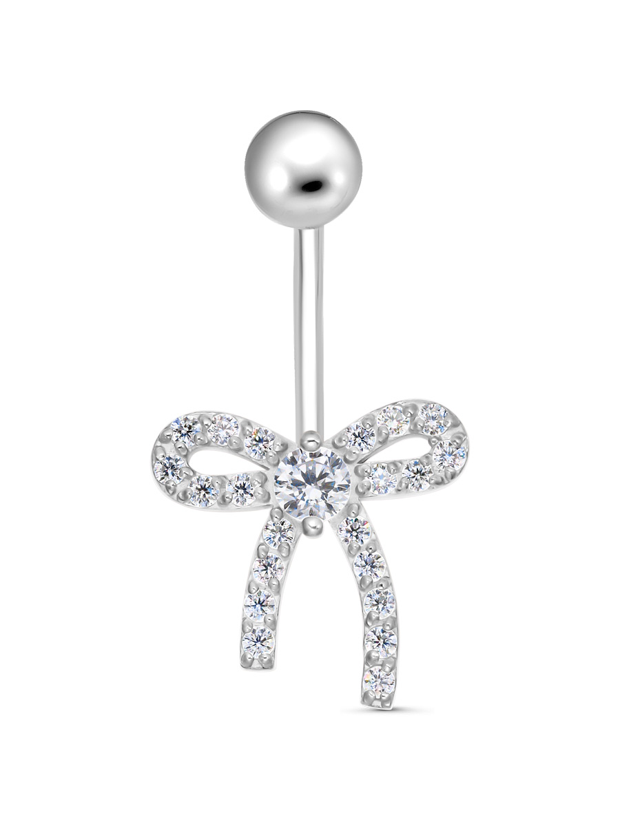 Пирсинг для пупка из серебра 925 пробы с родиевым покрытием. Характеристики. Вставка 1 недрагоценный бесцветный фианит 3 мм огранка круг, 21 недрагоценный бесцветный фианит 1,25 мм огранка круг. Общая высота пирсинга 23,5 мм. Высота декоративной части 12 мм, ширина 12,5 мм. Рабочая длина штанги 12 мм, толщина 1,2 мм. Диаметр завинчивающегося шарика 4,5 мм. Берегите изделие от воздействия влаги, любых спиртосодержащих растворов и жидкостей, а также парфюма. Для ухода и чистки желательно использовать специальные салфетки для серебра. Приятным дополнением к украшению является фирменная упаковка. Значение веса и габаритов в характеристиках примерные и могут отличаться от фактических.