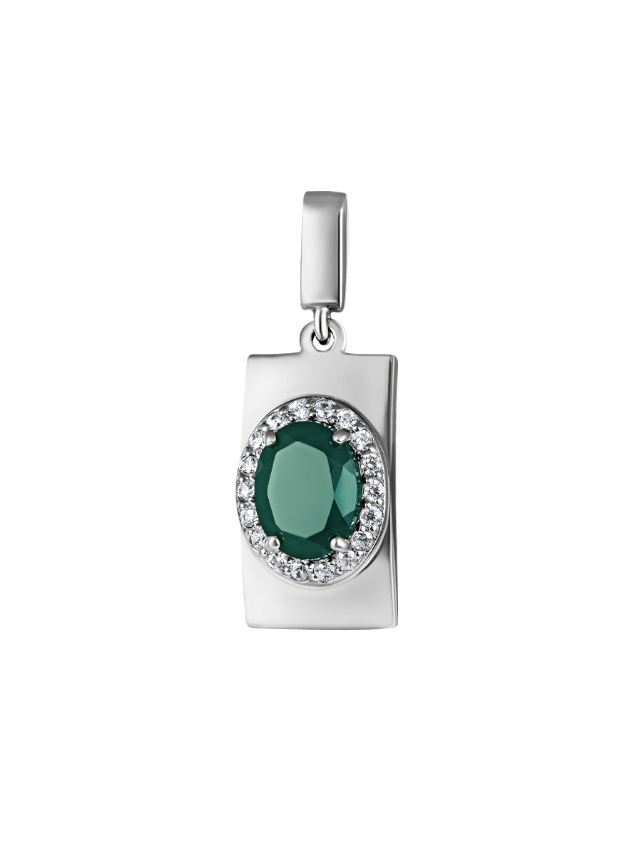 Элегантная подвеска с натуральным агатом выполнена из серебра 925 с родиевым покрытием. Характеристики. Вставка 1 натуральный агат 8х6мм цвет зелёный огранка овал, 18 недрагоценных бесцветных фианитов 1,25мм огранка круг. Общая высота подвески 26мм, высота подвесной части 18,5мм, ширина 9,4мм, глубина вместе с камнем 4,5мм. Внутренняя высота ушка 5,5мм, ширина 1,8мм. Отличным дополнением к подвеске будут кольцо арт.1-04-251-07р, серьги арт.2-04-251-07р. Берегите изделие от воздействия влаги, любых спиртосодержащих растворов и жидкостей, а также парфюма. Для ухода и чистки желательно использовать специальные салфетки для серебра. Приятным дополнением к ювелирному украшению является фирменная упаковка. Значение веса в характеристиках является примерным и может отличаться от фактического.