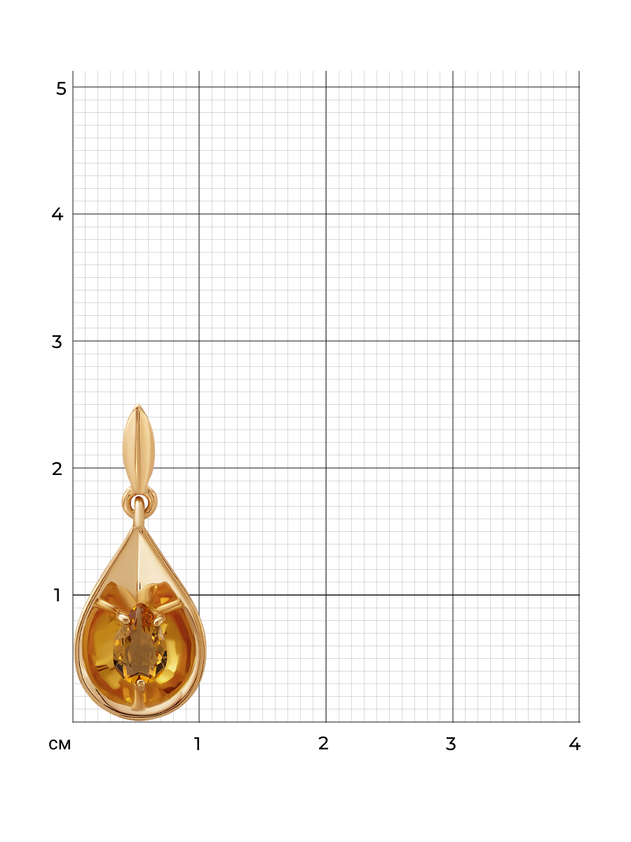 Подвеска выполнена из серебра 925 пробы с золотым покрытием. Характеристики. Вставка 1 натуральный цитрин 6х4 мм цвет жёлтый огранка груша. Общая высота подвески 25 мм, высота подвесной части 17,3 мм, ширина 10 мм. Внутренняя высота ушка 5 мм, ширина 3 мм. Отличным дополнением к подвеске будут серьги арт.2-04-322-34з. Берегите изделие от воздействия влаги, любых спиртосодержащих растворов и жидкостей, а также парфюма. Для ухода и чистки желательно использовать специальные салфетки для серебра. Приятным дополнением к украшению является фирменная упаковка. Значение веса и габаритов в характеристиках являются примерными и могут отличаться от фактических.