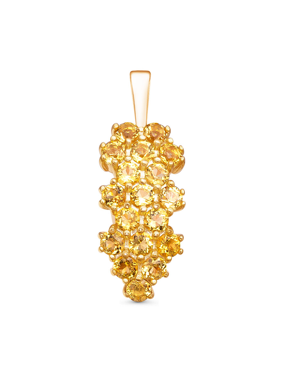 Подвеска выполнена из серебра 925 пробы с золотым покрытием. Характеристики. Вставка 18 натуральных цитринов 2,5мм цвет жёлтый огранка круг. Высота подвески 24,5 мм, ширина 8,8 мм. Внутренняя высота ушка 5 мм, ширина 2,5 мм. Отличным дополнением к подвеске будут кольцо арт. 1-04-343-34з и серьги арт. 2-04-343-34з. Берегите изделие от воздействия влаги, любых спиртосодержащих растворов и жидкостей, а также парфюма. Для ухода и чистки желательно использовать специальные салфетки для серебра. Приятным дополнением к ювелирному украшению является фирменная упаковка. Значение веса и габаритов в характеристиках примерные и могут отличаться от фактических.