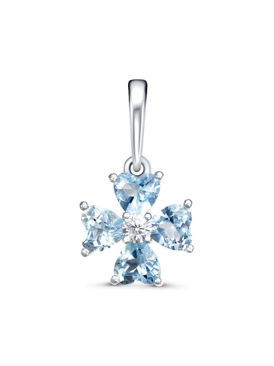 Подвеска выполнена из серебра 925 пробы с родиевым покрытием. Характеристики. Вставка 4 натуральных топаза 4х4 мм огранка сердце, 1 недрагоценный бесцветный фианит 2,5 мм огранка круг. Общая высота подвески 17,5 мм, высота подвесной части вместе с колечком 11 мм, ширина 9,5 мм, глубина 4,2 мм. Внутренняя высота ушка 6 мм, ширина 3,7 мм. Отличным дополнением к подвеске будут серьги арт.2-04-422-08р. Берегите изделие от воздействия влаги, любых спиртосодержащих растворов и жидкостей, а также парфюма. Для ухода и чистки желательно использовать специальные салфетки для серебра. Приятным дополнением к ювелирному украшению является фирменная упаковка. Значение веса и габаритов в характеристиках примерные и могут отличаться от фактических.