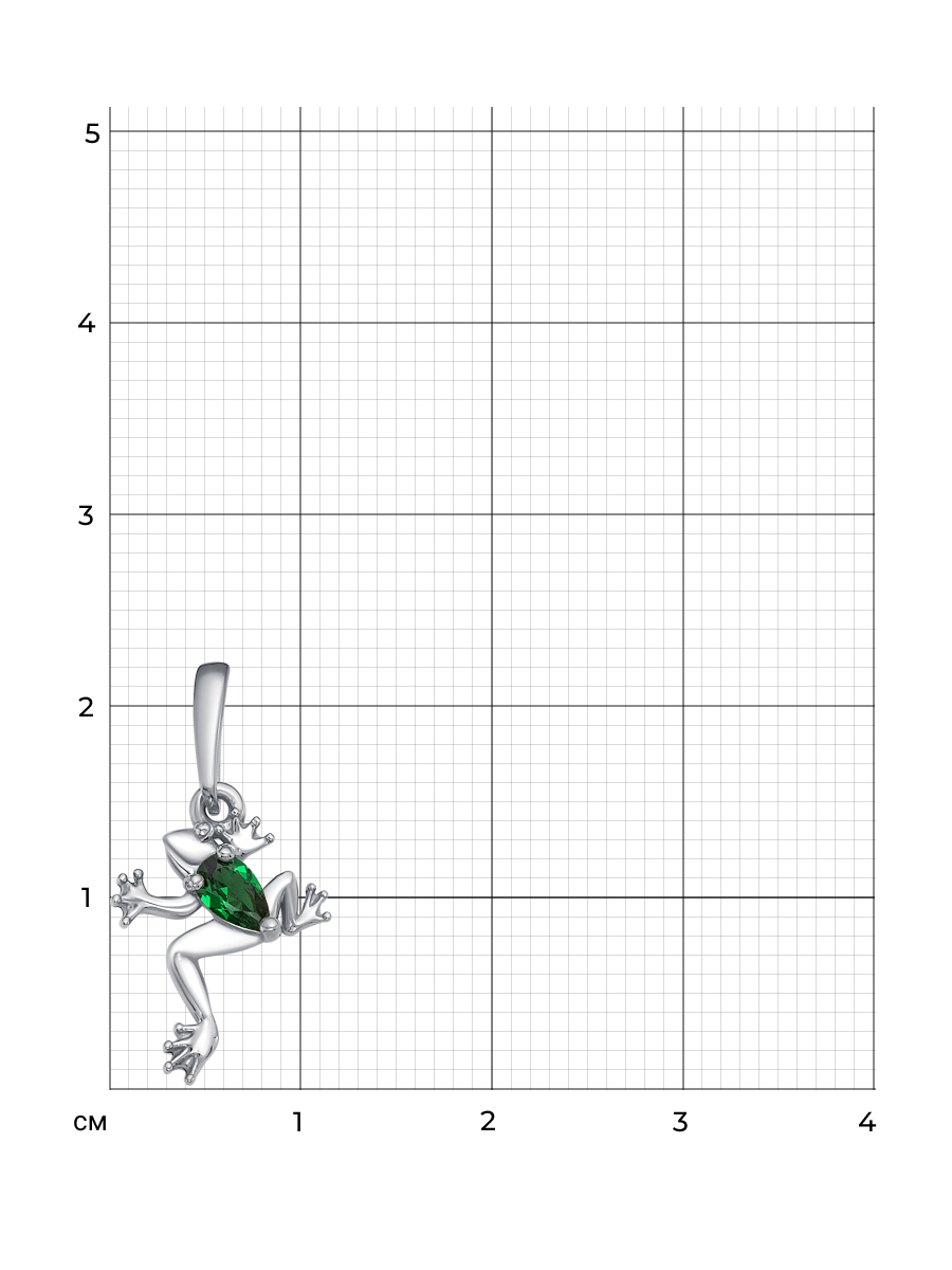 Подвеска Лягушка выполнена из серебра 925 пробы с родиевым покрытием. Характеристики. Вставка 1 нано кристалл 5х3мм цвет изумруд огранка груша. Общая высота подвески 23мм, высота подвесной части 16мм, ширина 11мм, глубина вместе с камнем 2,5мм. Внутренняя высота ушка 5,5мм, ширина 3,4мм. Отличным дополнением к подвеске будут кольцо арт.1-06-276-12р и серьги арт.2-06-276-12р. Берегите изделие от воздействия влаги, любых спиртосодержащих растворов и жидкостей, а также парфюма. Для ухода и чистки желательно использовать специальные салфетки для серебра. Приятным дополнением к ювелирному украшению является фирменная упаковка. Значение веса и габаритов в характеристиках примерные и могут отличаться от фактических.