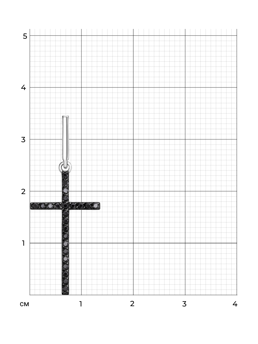 Подвеска Крест с чёрными фианитами 1,25мм выполнена из серебра 925 пробы с родиевым покрытием. Характеристики. Вставка 24 недрагоценных чёрных фианита 1,25мм огранка круг. Общая высота подвески 34мм, высота подвесной части 25,5мм, ширина 13,4мм, глубина 1,5мм. Внутренняя высота ушка 6,5мм, ширина 2,5мм. Отличным дополнением к подвеске будет кольцо арт.1-08-011-11р и серьги арт.2-08-011-11р. Берегите изделие от воздействия влаги, любых спиртосодержащих растворов и жидкостей, а также парфюма. Для ухода и чистки желательно использовать специальные салфетки для серебра. Приятным дополнением к ювелирному украшению является фирменная упаковка. Значение веса в характеристиках является примерным и может отличаться от фактического.