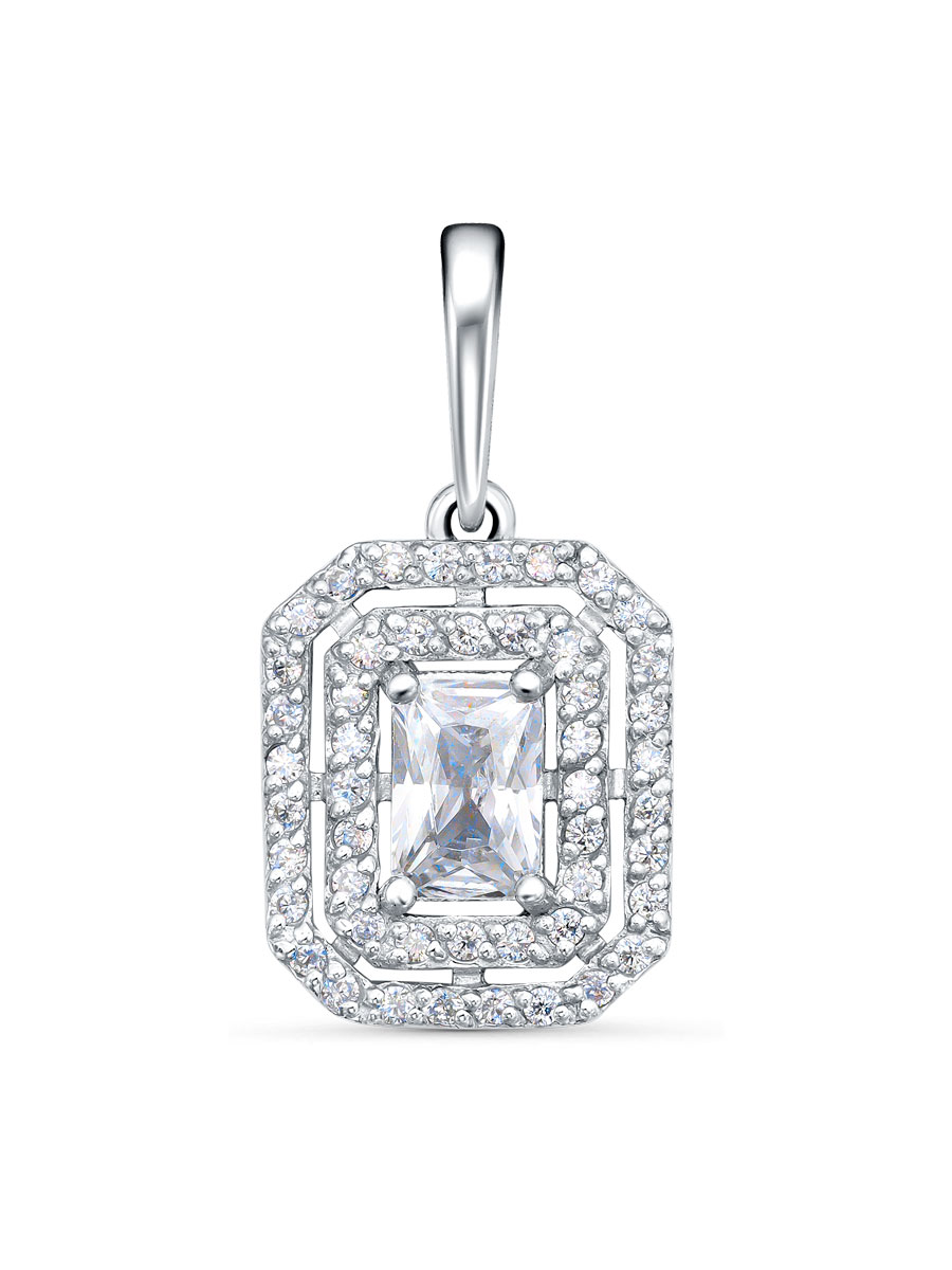 Подвеска выполнена из серебра 925 пробы с родиевым покрытием. Характеристики. Вставка 1 недрагоценный бесцветный фианит 6х4 мм огранка октагон, 48 недрагоценных бесцветных фианитов 1 мм огранка круг. Общая высота подвески 21 мм, высота подвесной части 13 мм, ширина 11 мм. Внутренняя высота ушка 6 мм, ширина 3,6 мм. Отличным дополнением к подвеске будут кольцо арт. 1-08-451-12р и серьги арт. 2-08-451-12р. Берегите изделие от воздействия влаги, любых спиртосодержащих растворов и жидкостей, а также парфюма. Для ухода и чистки желательно использовать специальные салфетки для серебра. Приятным дополнением к ювелирному украшению является фирменная упаковка. Значение веса и габаритов в характеристиках примерные и могут отличаться от фактических.